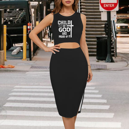 His Child And Proud Of It Crew Neck Side Slit Cut Out Sleeveless Christian Bodycon Casual Dress