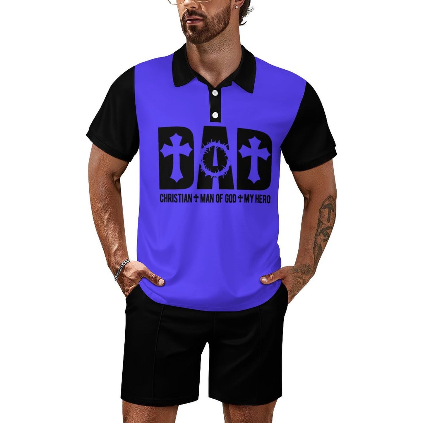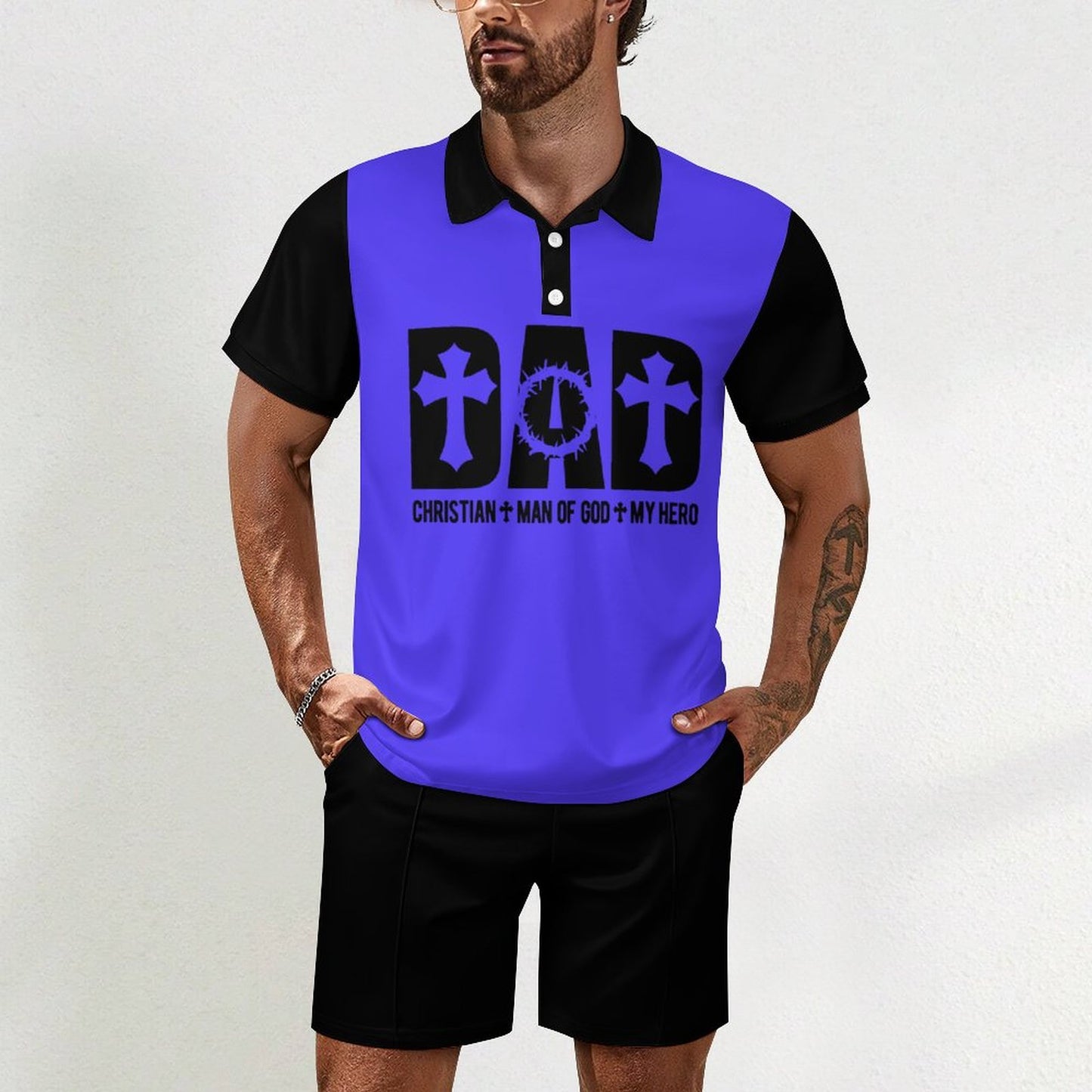 Dad Christian Man Of God My Hero Men's Christian Casual Outfit Polo Set SALE-Personal Design