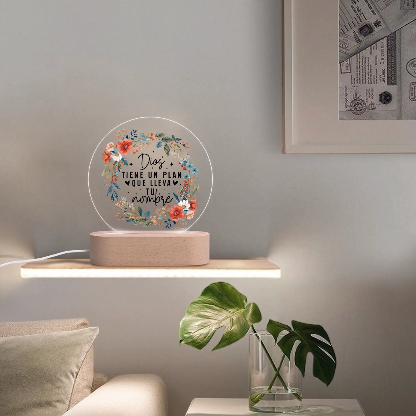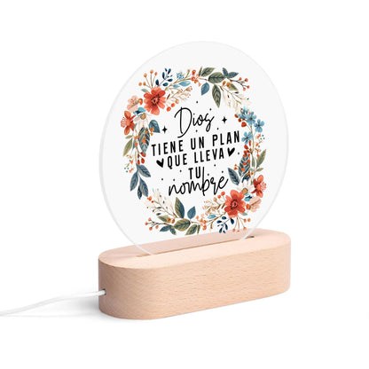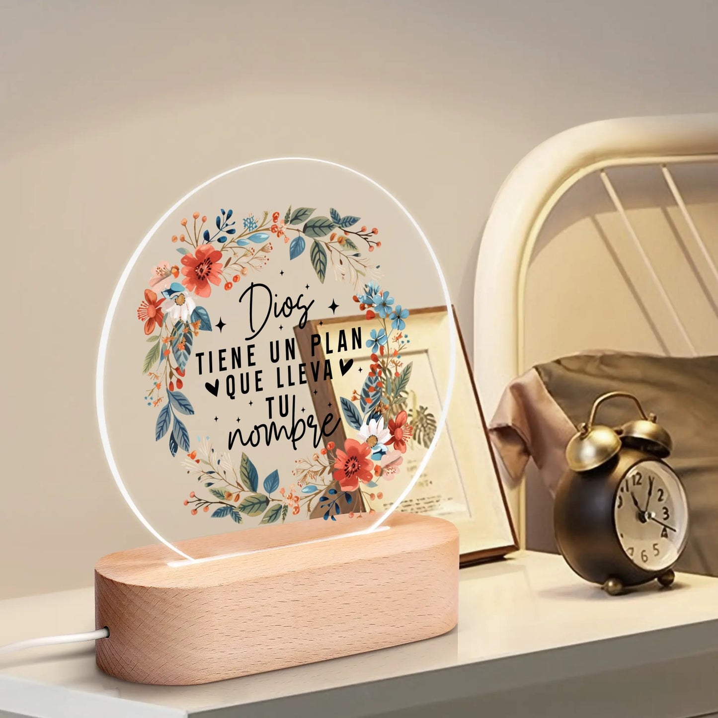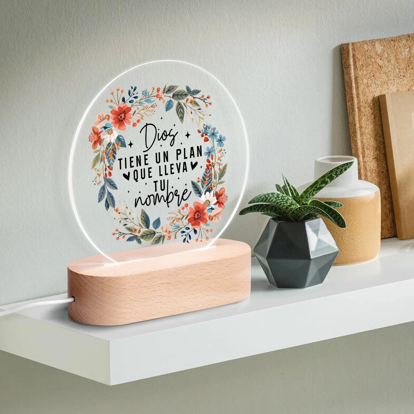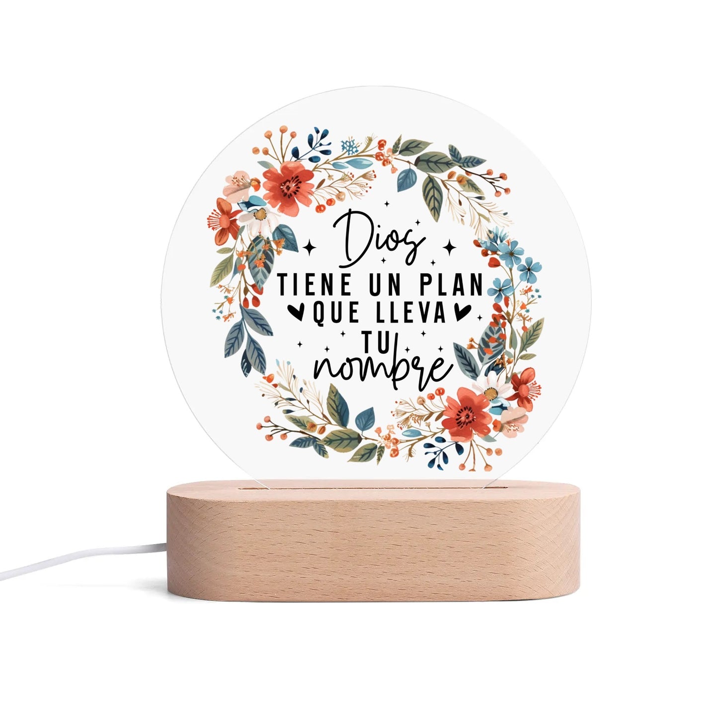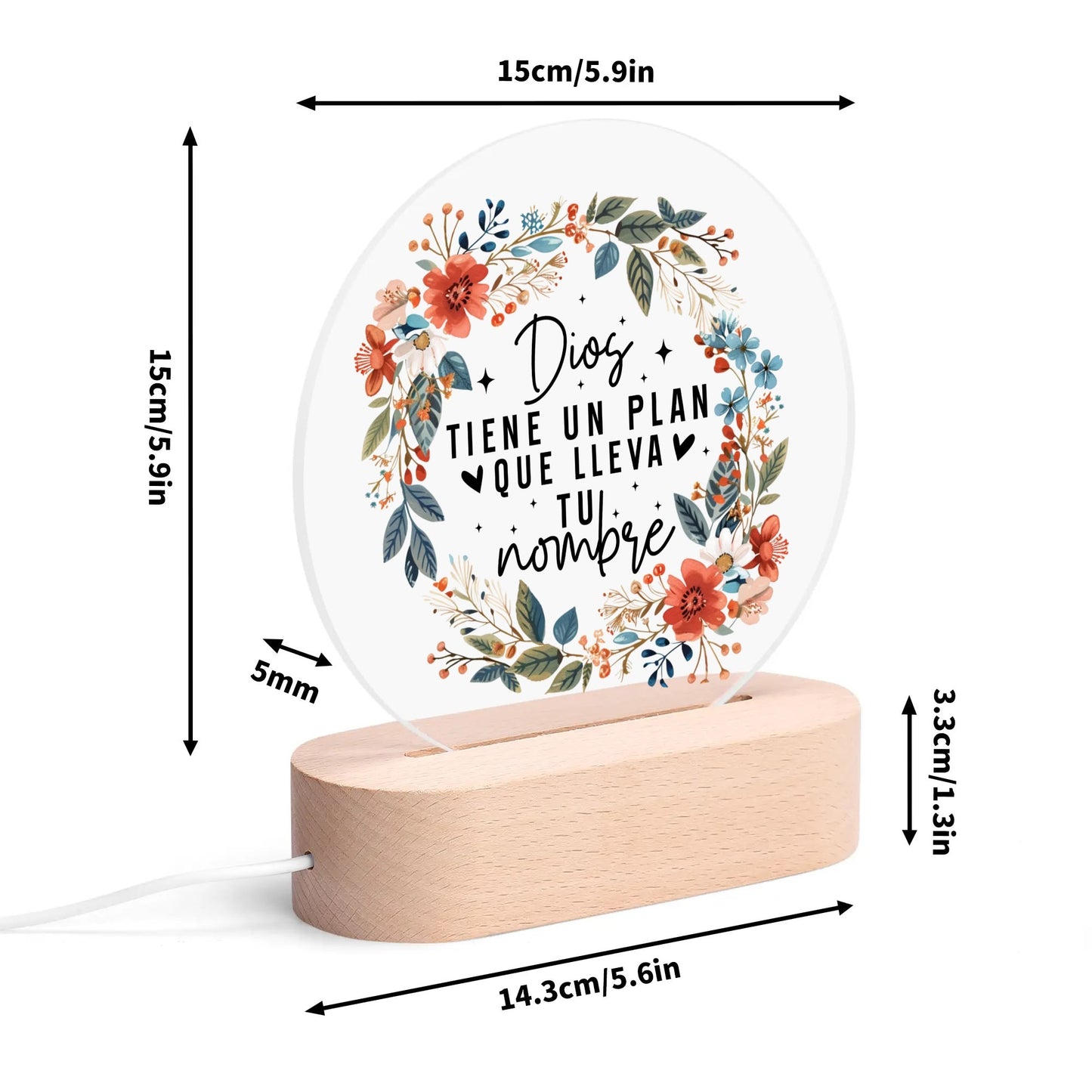 Dios Tiene Un Plan Que LLeva Tu Nombre Spanish Christian Acrylic Round Lamp Night Light Christian Gift Idea