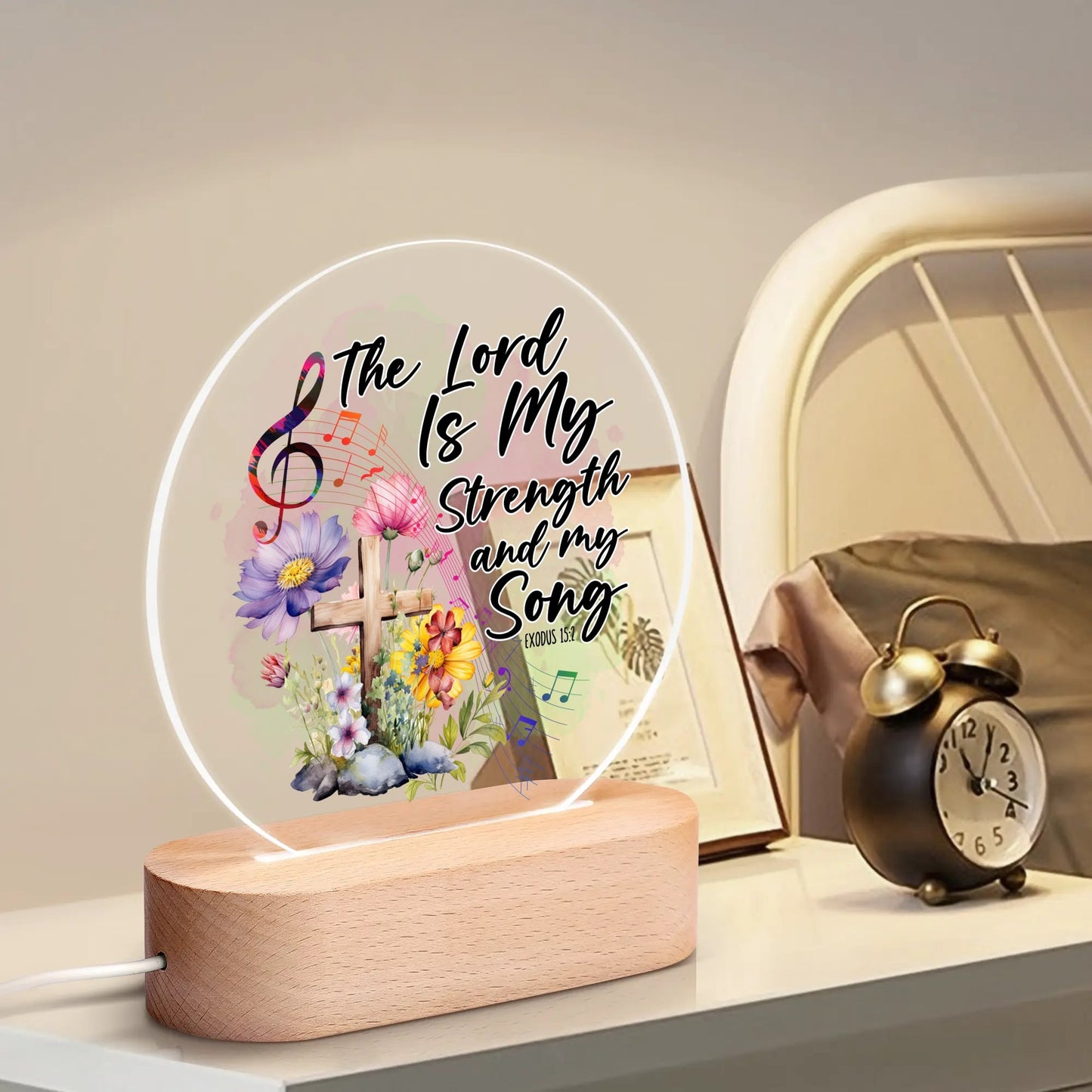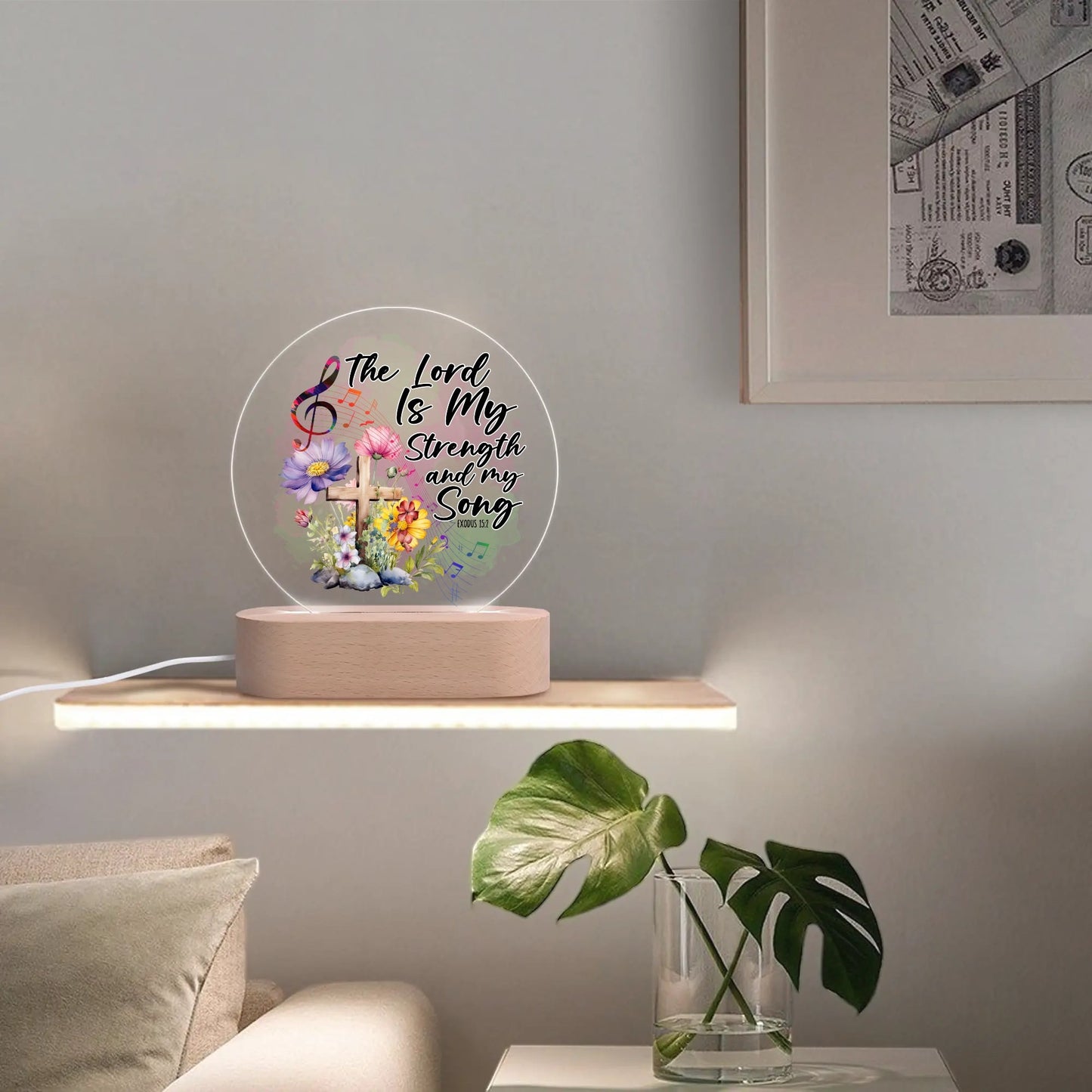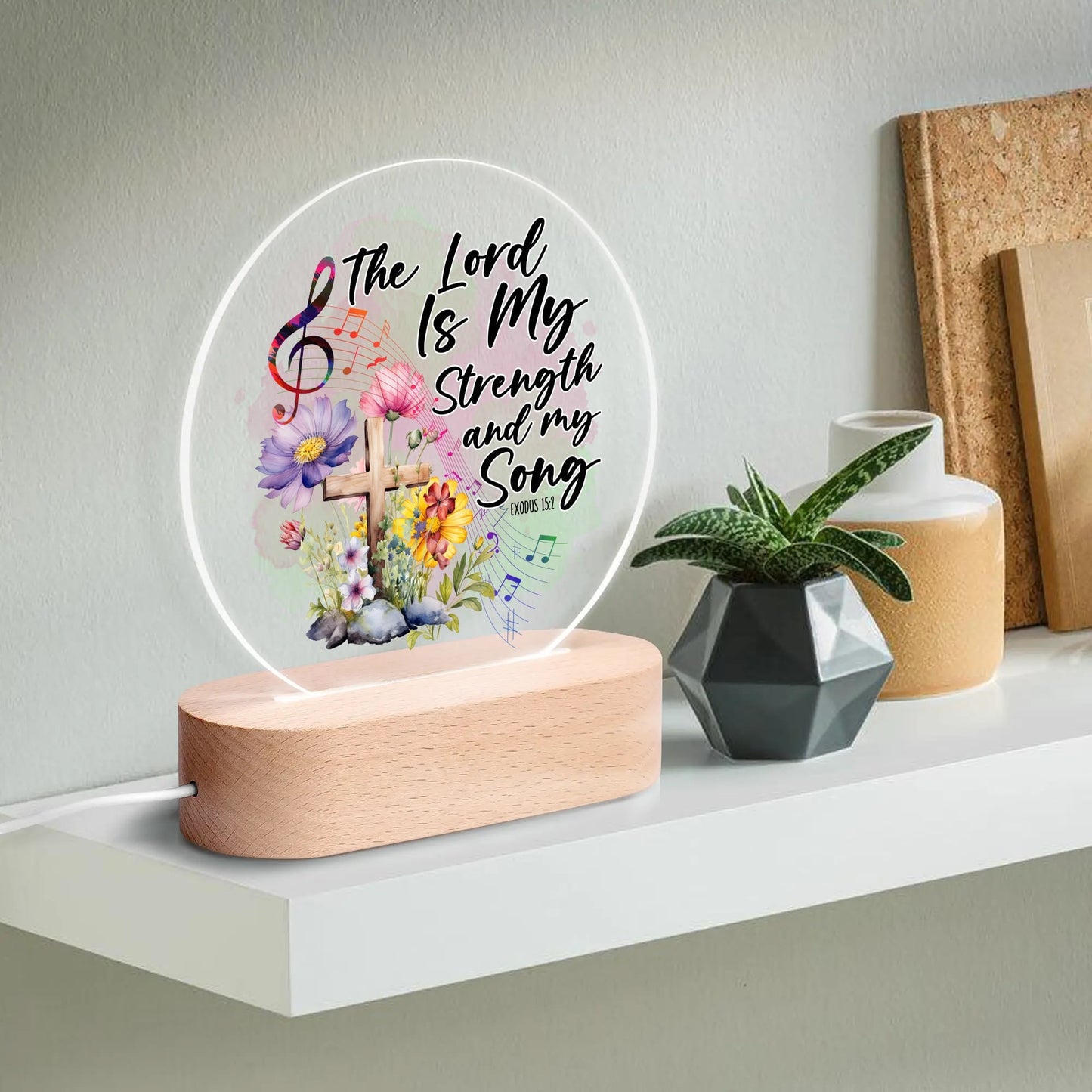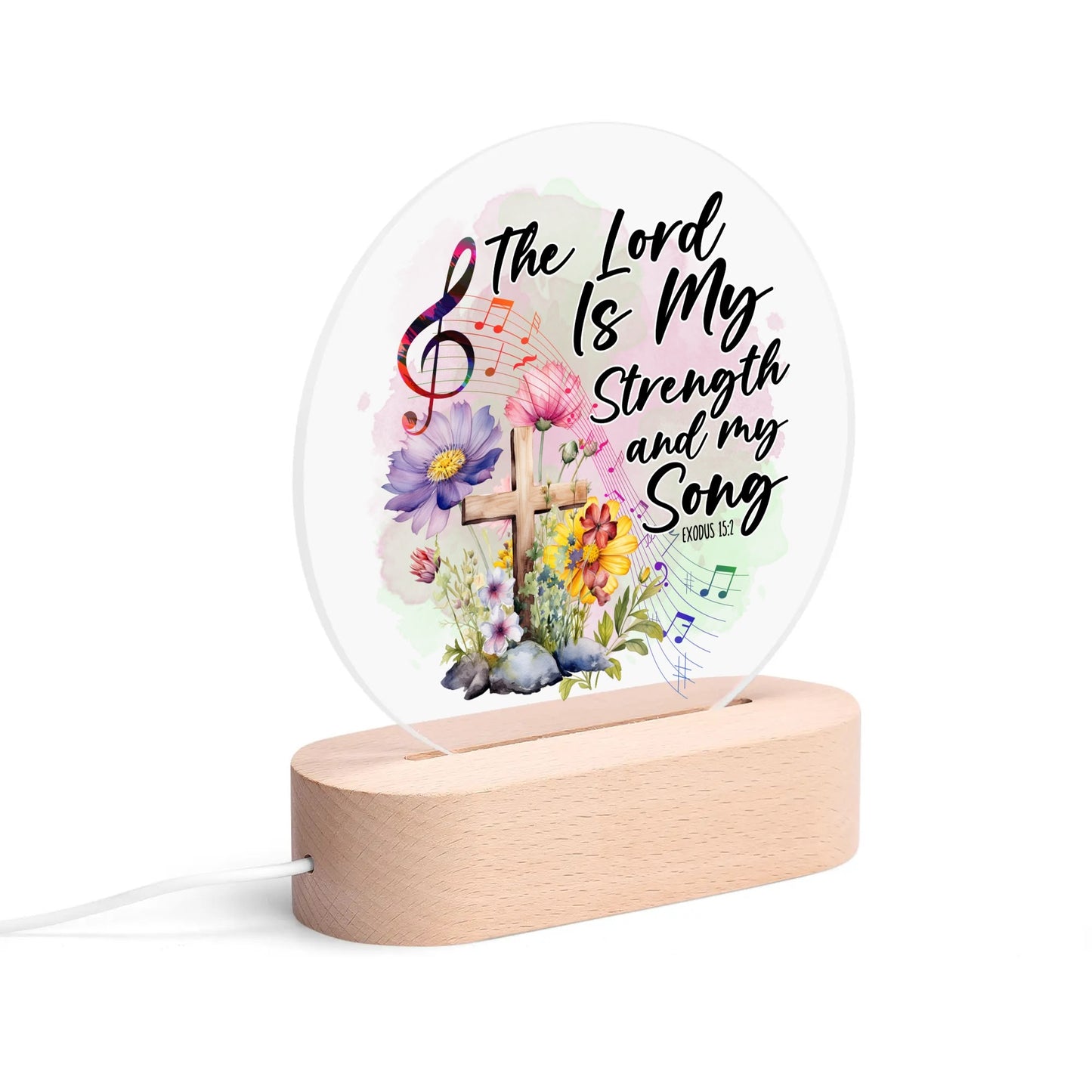 Exodus 15:2 The Lord Is My Strength And My Song Christian Acrylic Round Lamp Night Light Christian Gift Idea