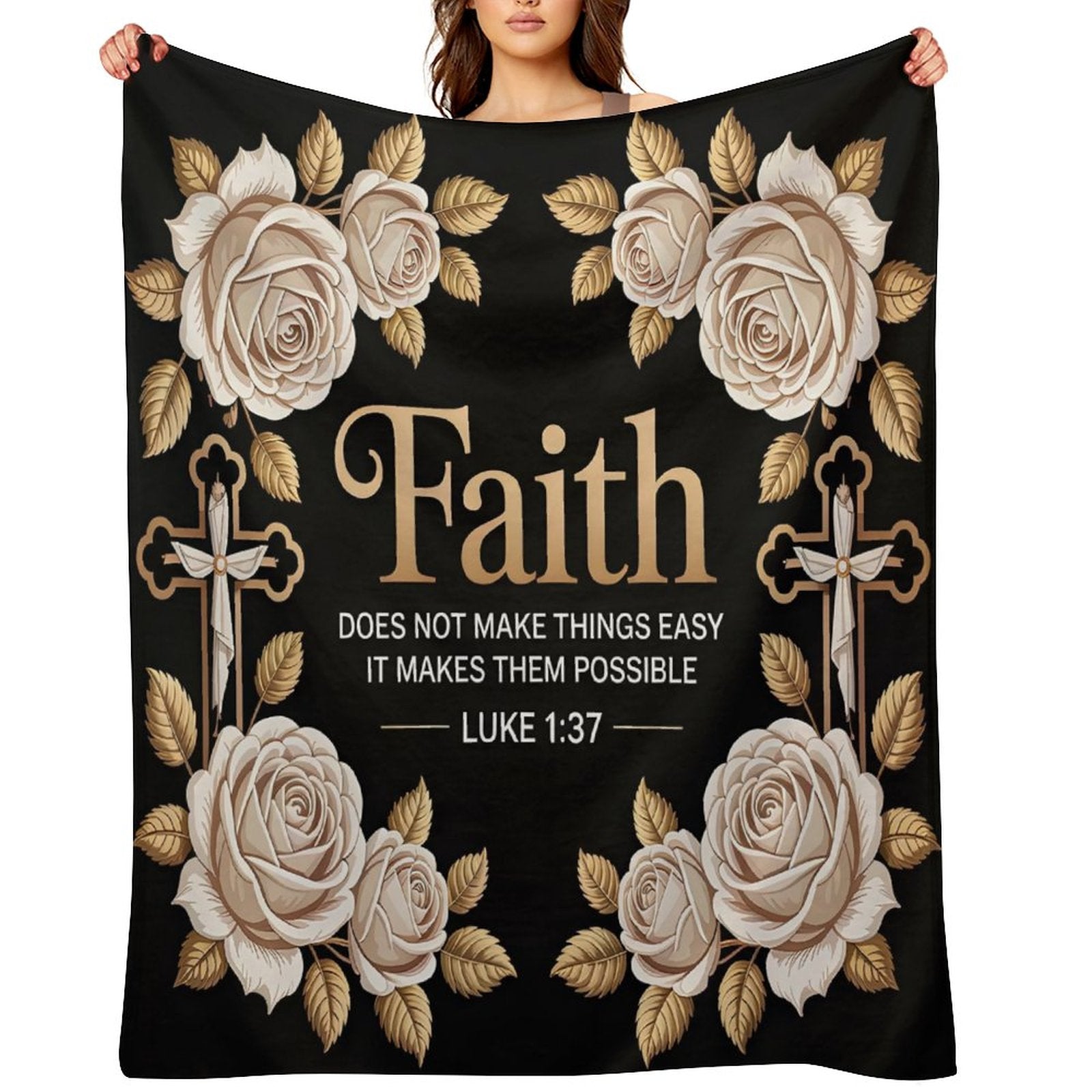 Perfect for curling up on the couch, relaxing in your favorite chair, enjoying devotional time, or adding a meaningful touch to your bedroom. Wherever you use it, this blanket brings warmth, comfort, and a daily reminder to keep your faith strong.