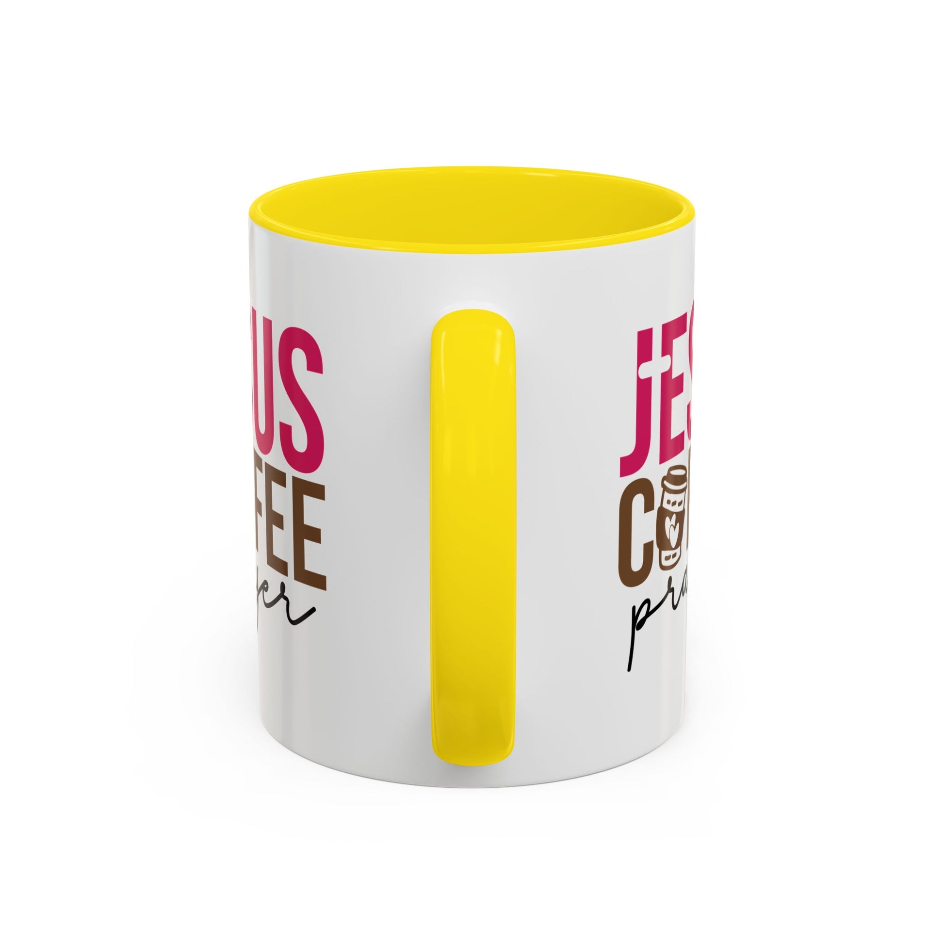 Start your day with a cheerful vibe with this Accent Coffee Mug. Perfect for coffee lovers and tea enthusiasts alike, this mug brings a splash of color and joyful aesthetics to your morning routine. Whether you're sipping a warm beverage at home, at the office, or during a cozy gathering, its vibrant design will uplift your spirit and inspire positive conversations. Ideal for gifting during holidays like Christmas, birthdays, or even as a thoughtful surprise for someone who appreciates humor and creativity in their daily life. This mug resonates especially well with those who treasure their morning rituals and seek a daily reminder of faith, coffee, and connection.
