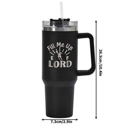 Fill Me Up Lord 40oz Stainless Steel Christian Tumbler Travel Mug with Handle and Straw for Cup Holder
