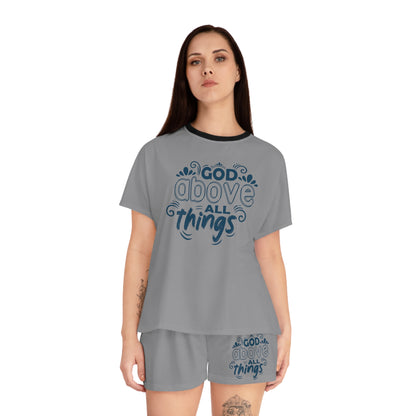 So why settle for plain and boring pajamas when you can have a stylish and meaningful set? Order your God Above All Things Women's Christian Short Pajama Set now and sleep in comfort and faith.