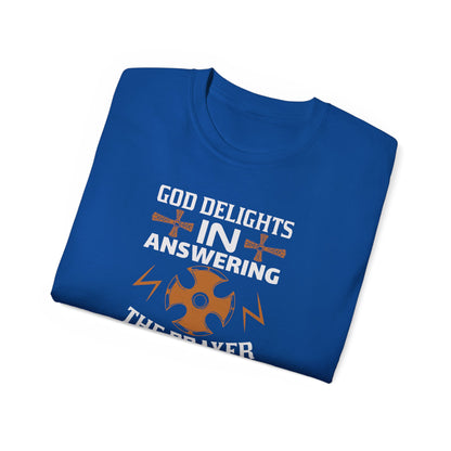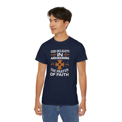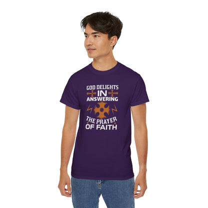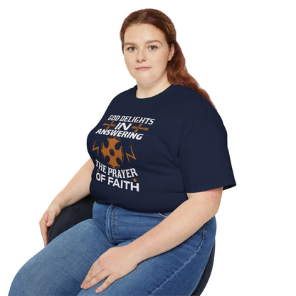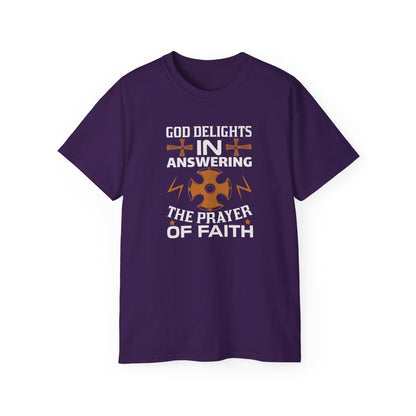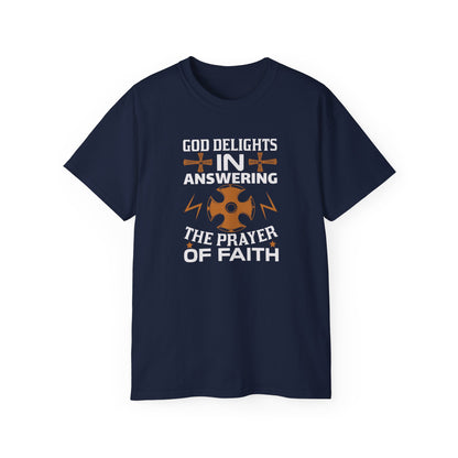 DELIGHTS IN ANSWERING THE PRAYER OF FAITH Unisex Christian Ultra Cotton Tee
