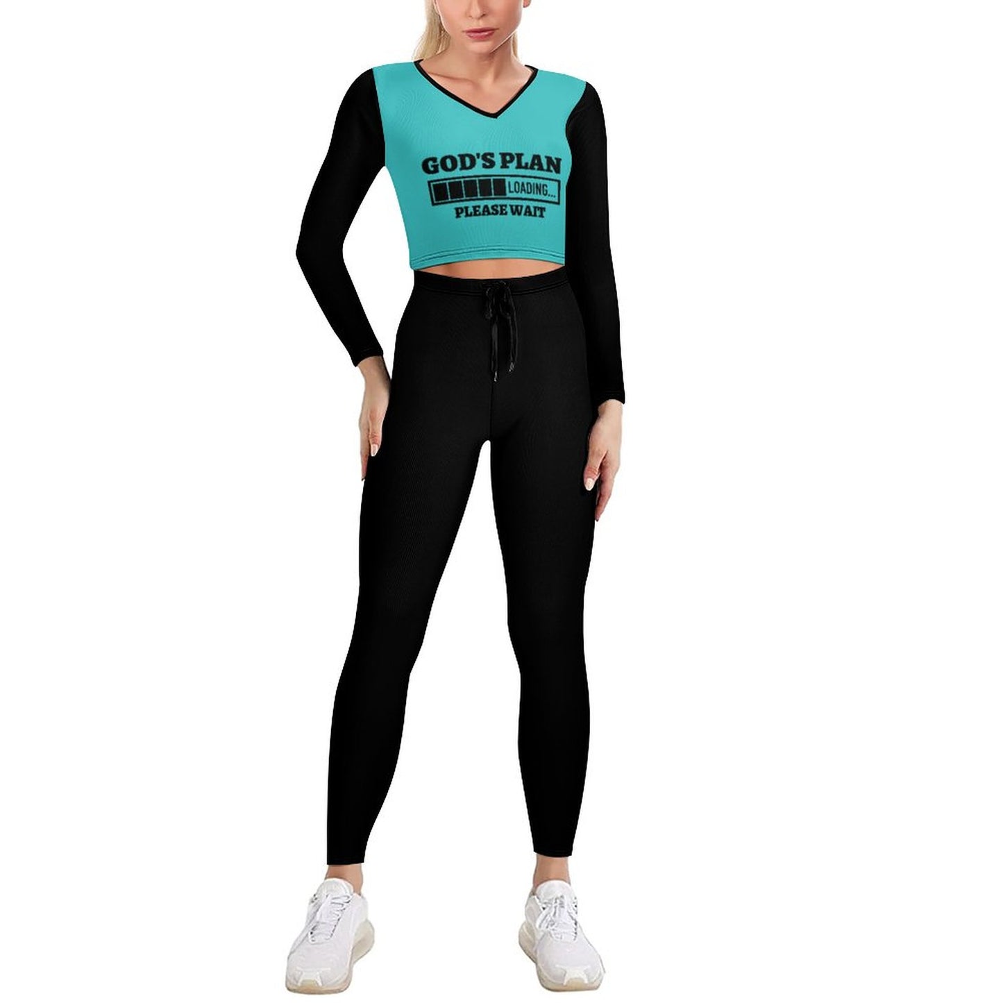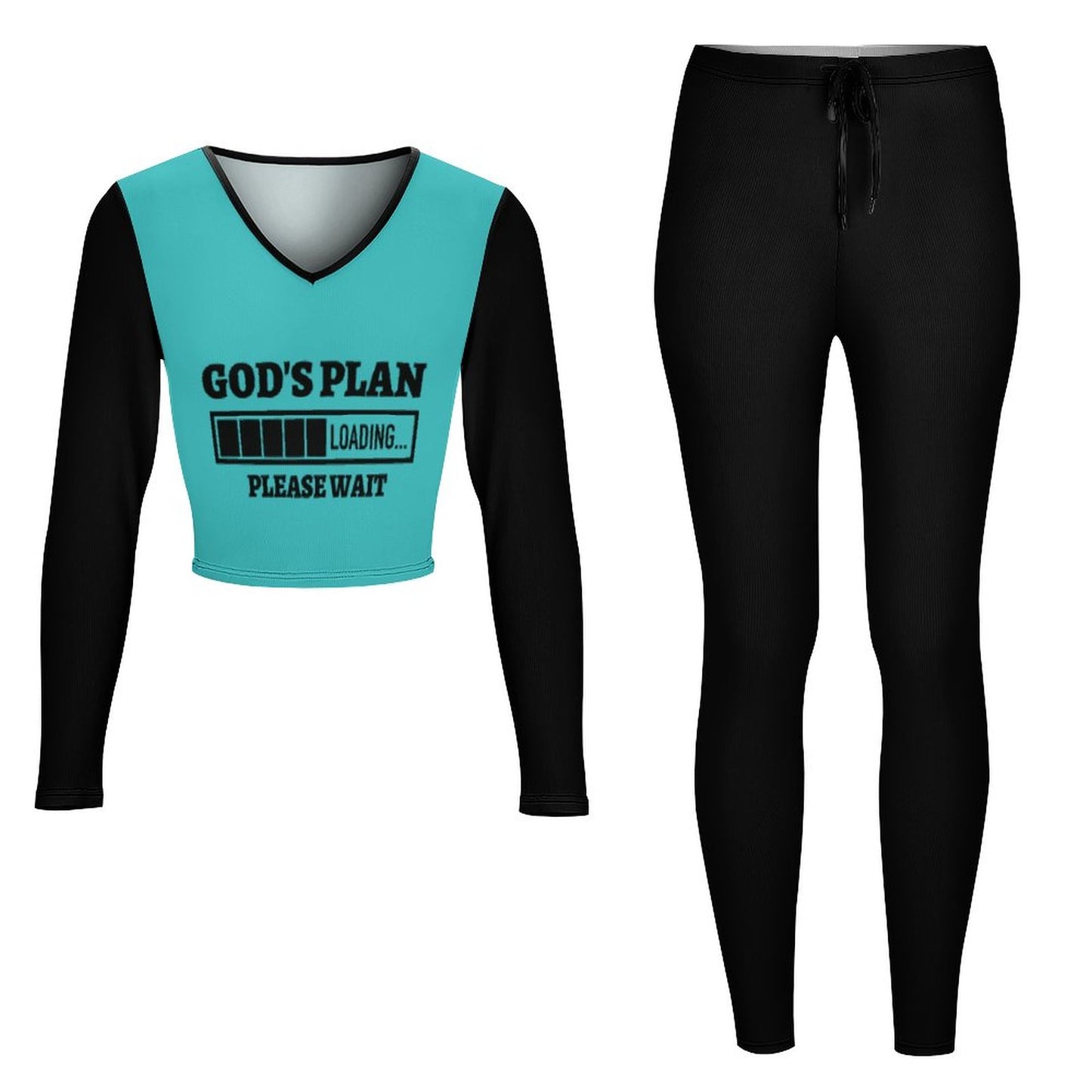 God's Plan Loading Women's Christian Casual Outfit V neck Sweatshirt Set  SALE-Personal Design