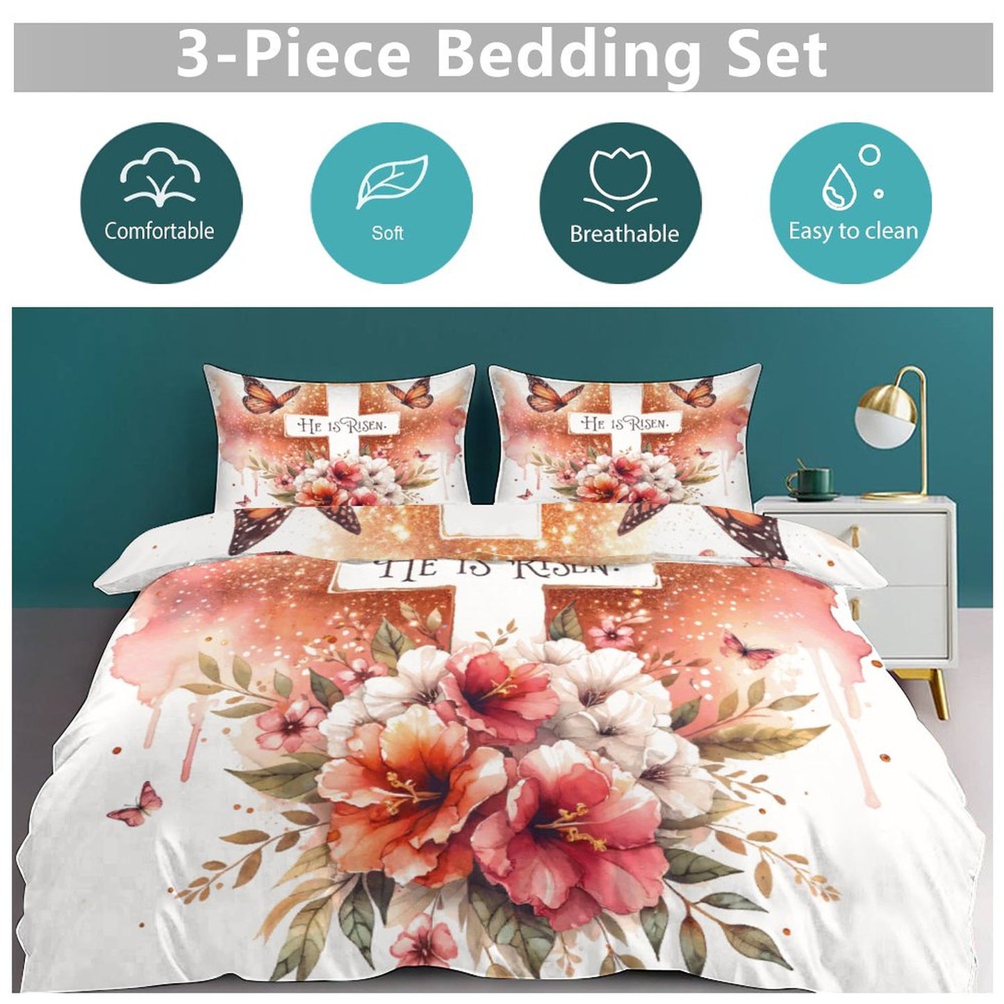 He Is Risen 3-Piece Christian Comforter Bedding Set