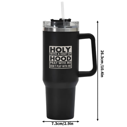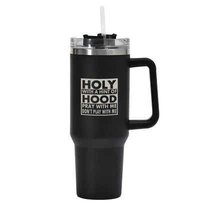 Holy With A Hint Of Hood 40oz Stainless Steel Christian Tumbler Travel Mug with Handle and Straw for Cup Holder