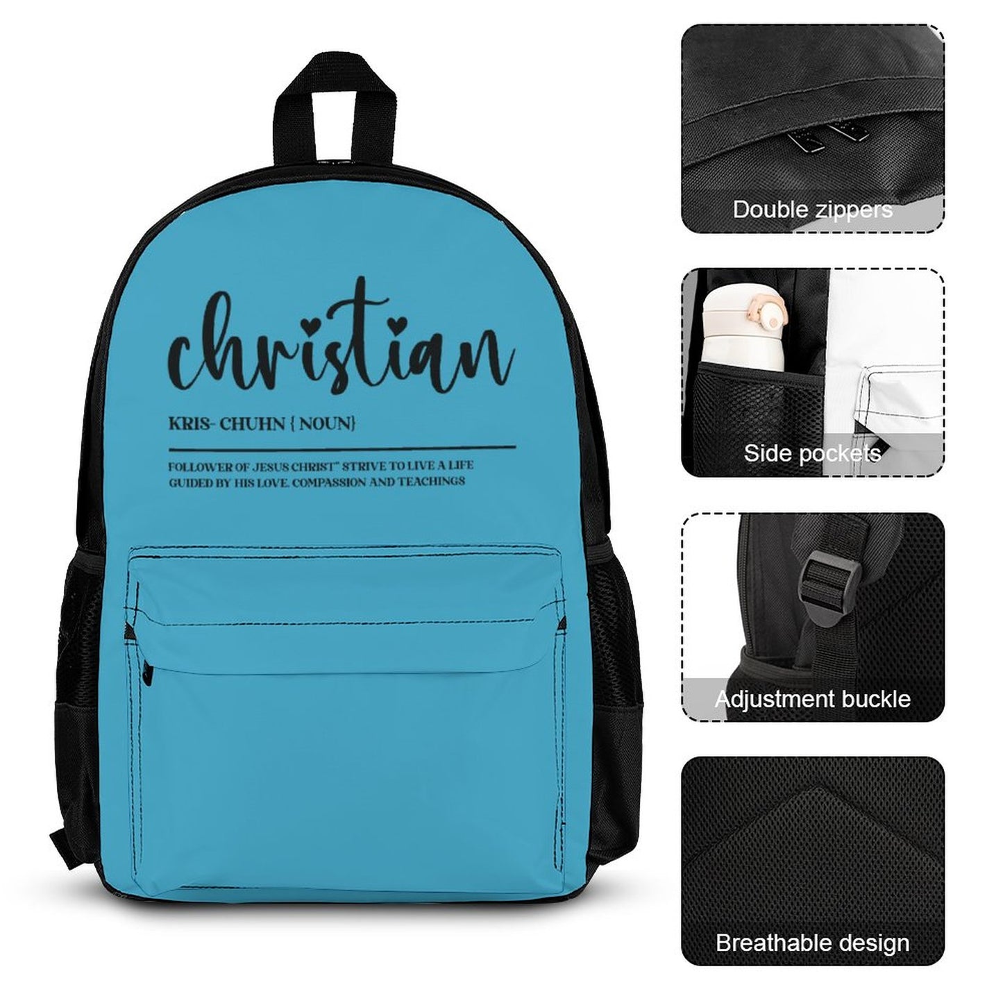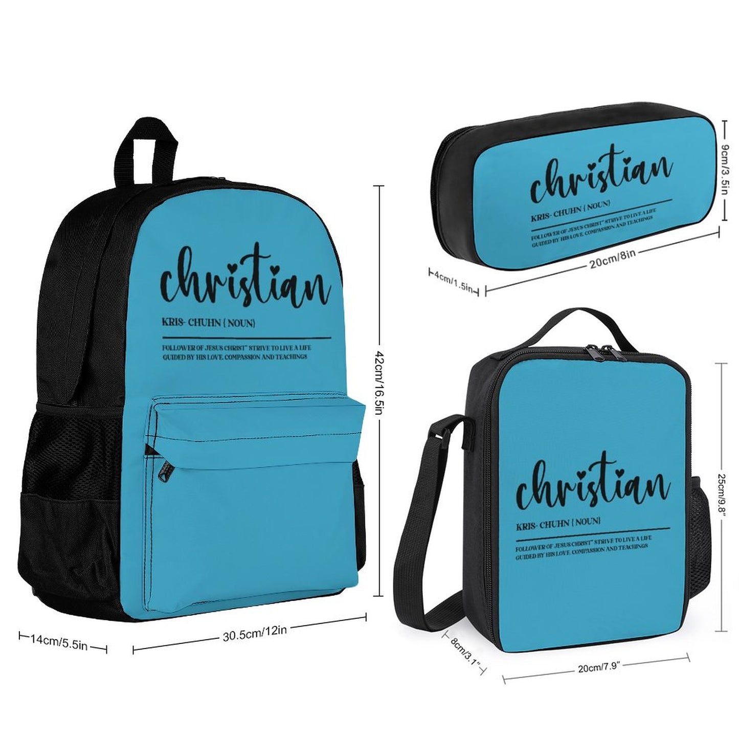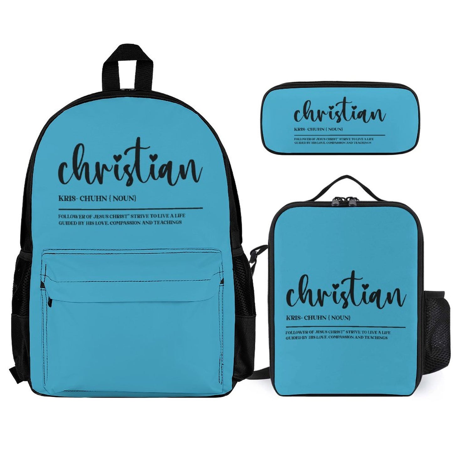 I Am A Christian Follower Of Christ Christian Backpack Set of 3 Bags (Shoulder Bag Lunch Bag & Pencil Pouch)