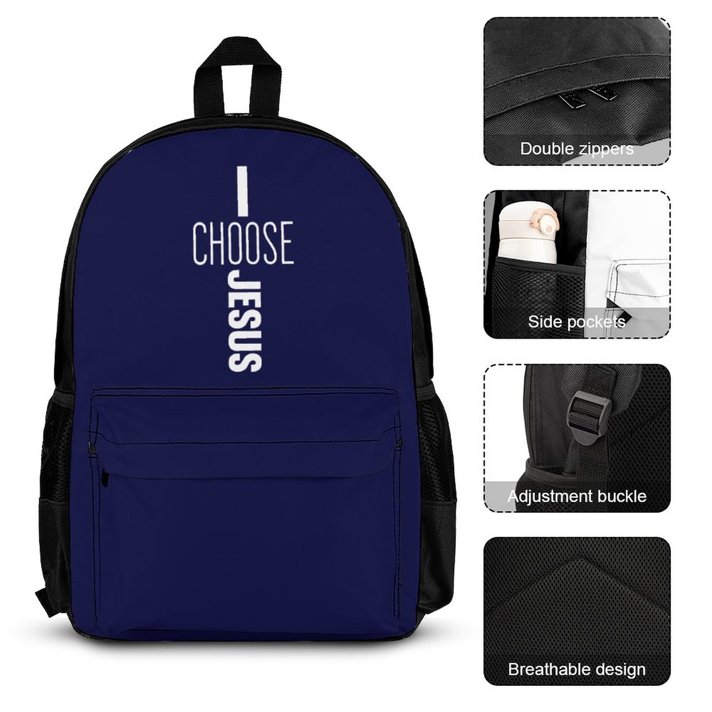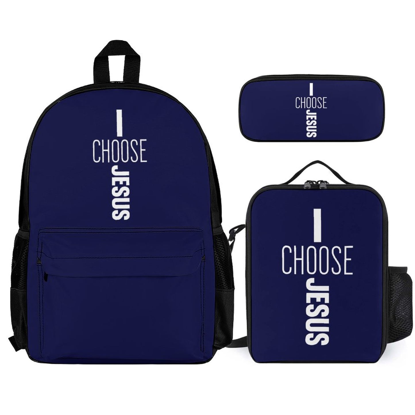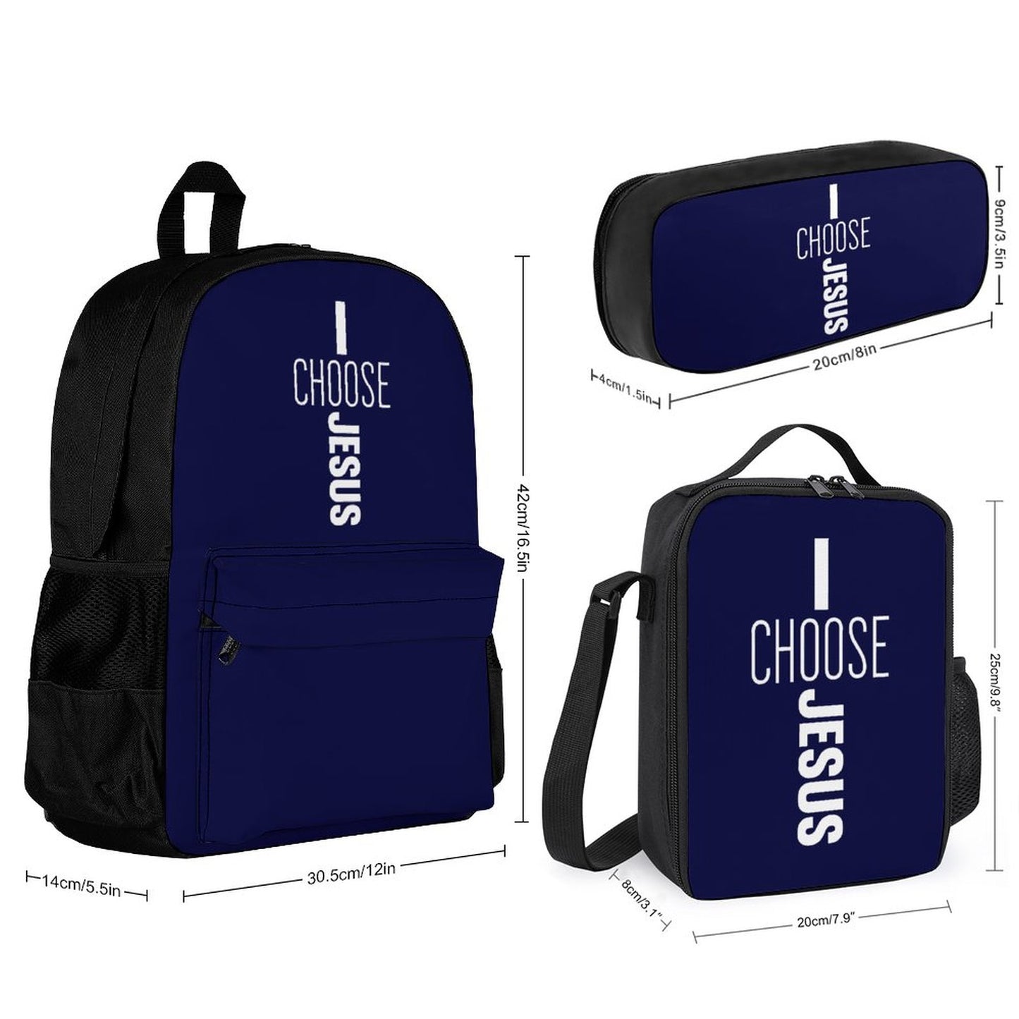 I Choose Him Christian Backpack Set of 3 Bags (Shoulder Bag Lunch Bag & Pencil Pouch)