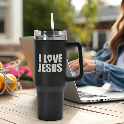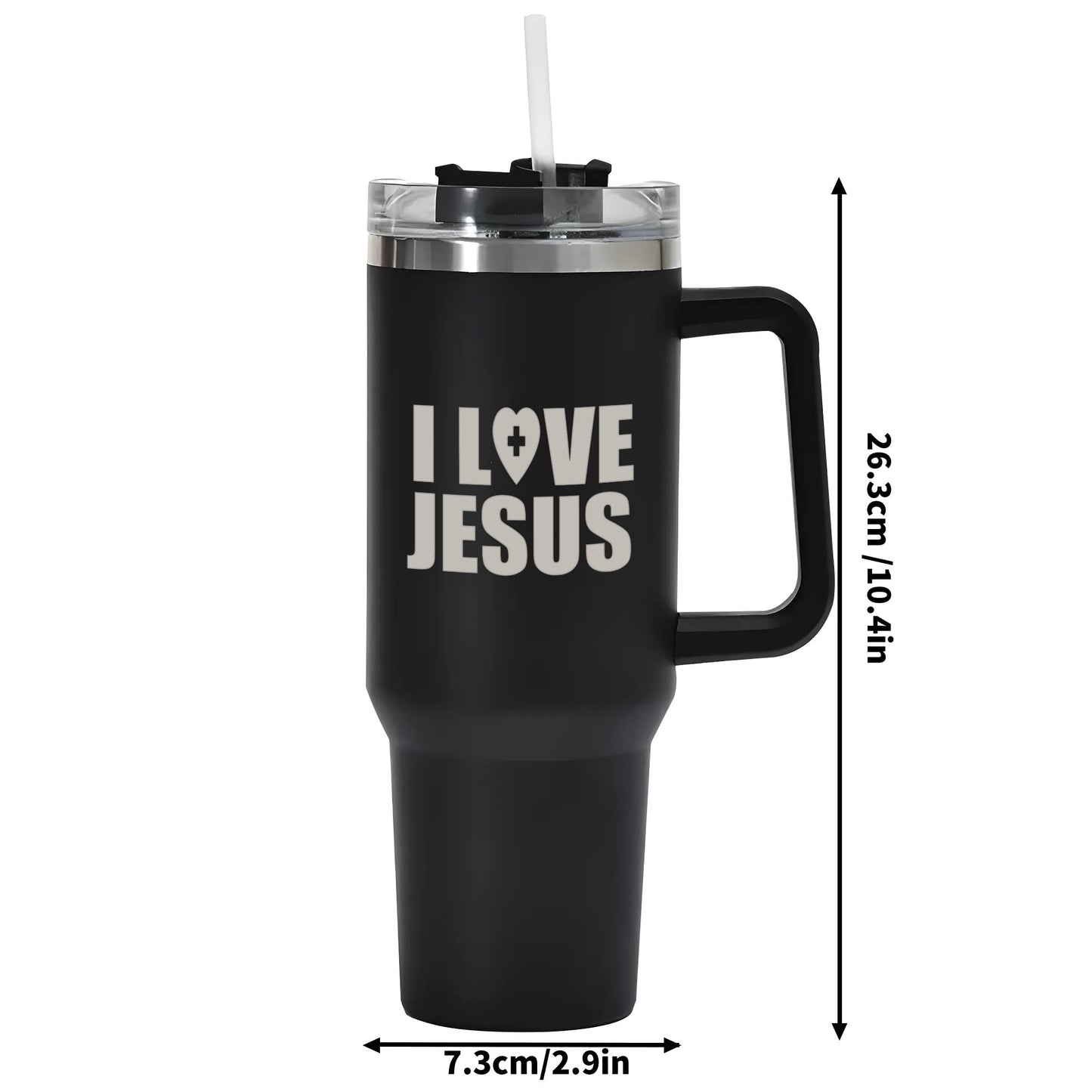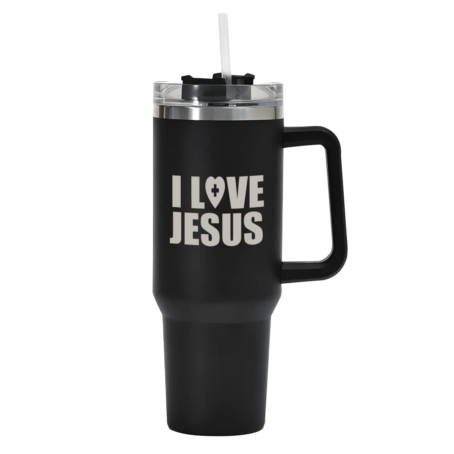 I Love Him 40oz Stainless Steel Christian Tumbler Travel Mug with Handle and Straw for Cup HolderY53R8QMN-1