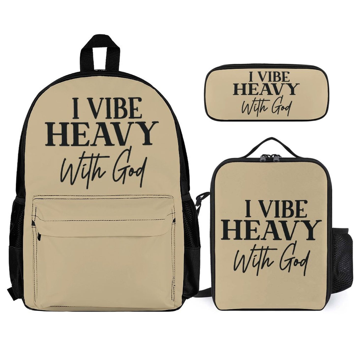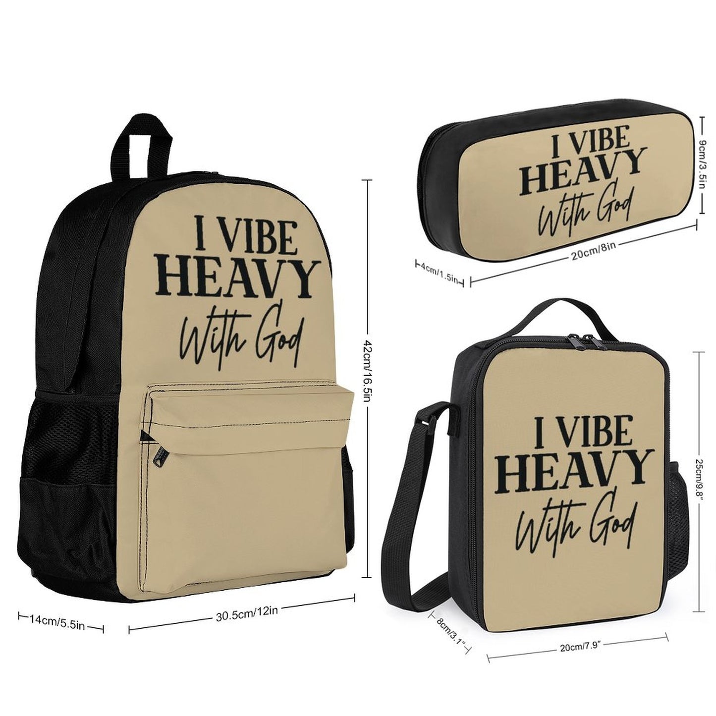 I Vibe Heavy With Him Christian Backpack Set of 3 Bags (Shoulder Bag Lunch Bag & Pencil Pouch)