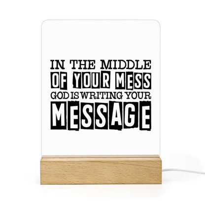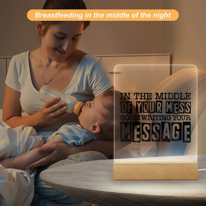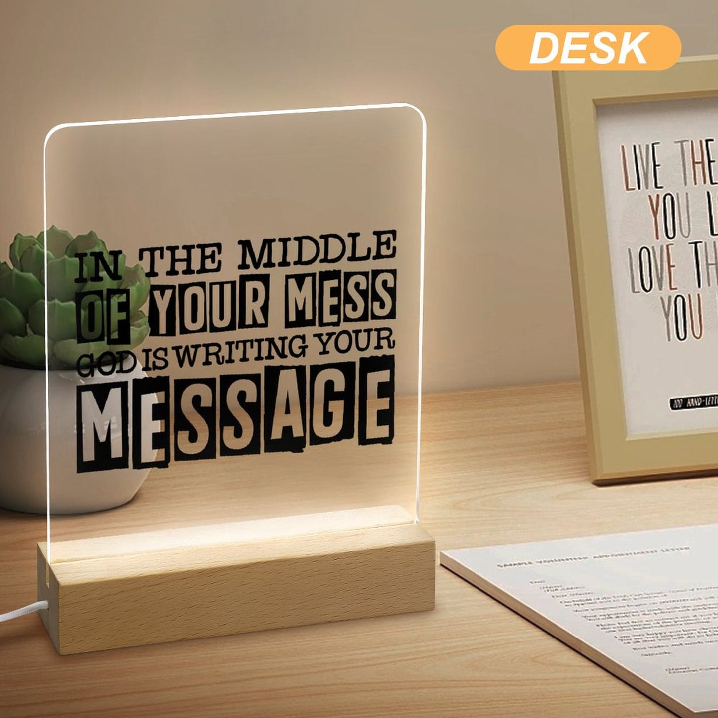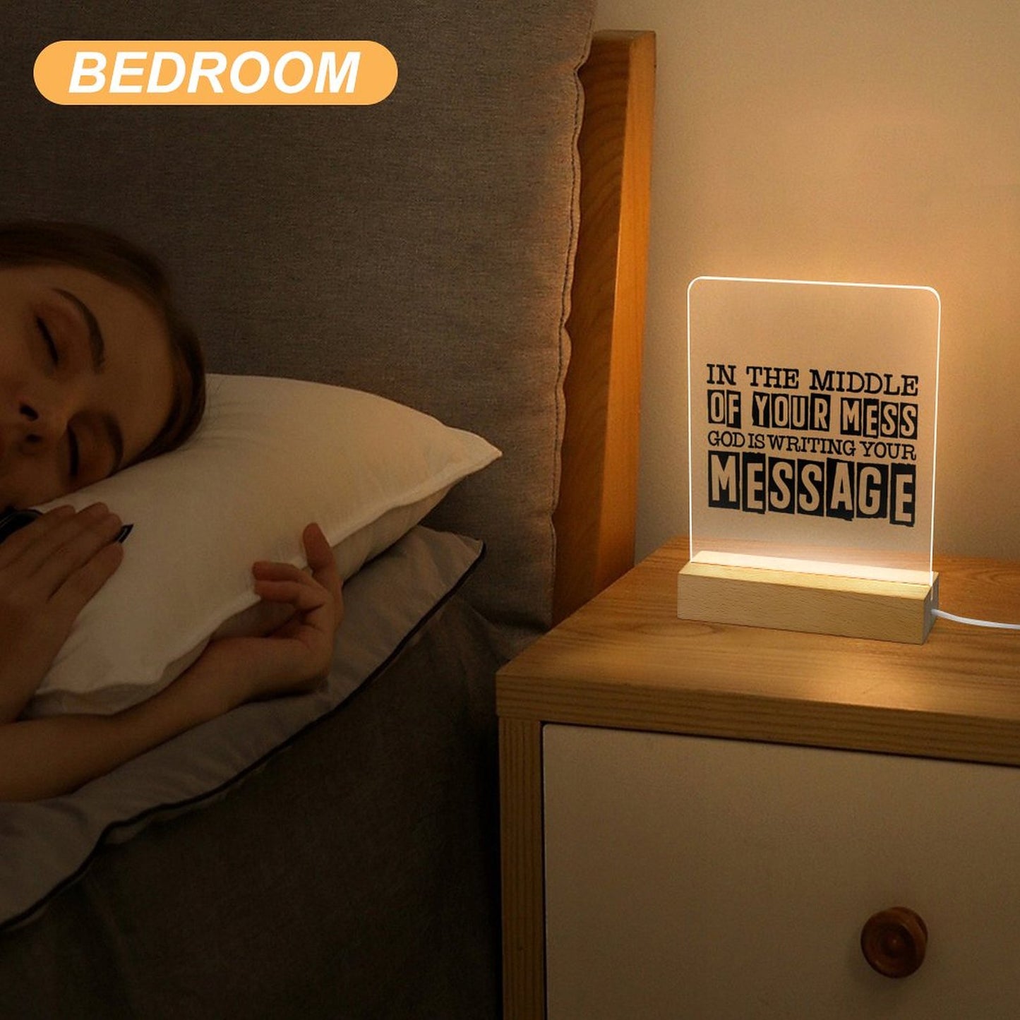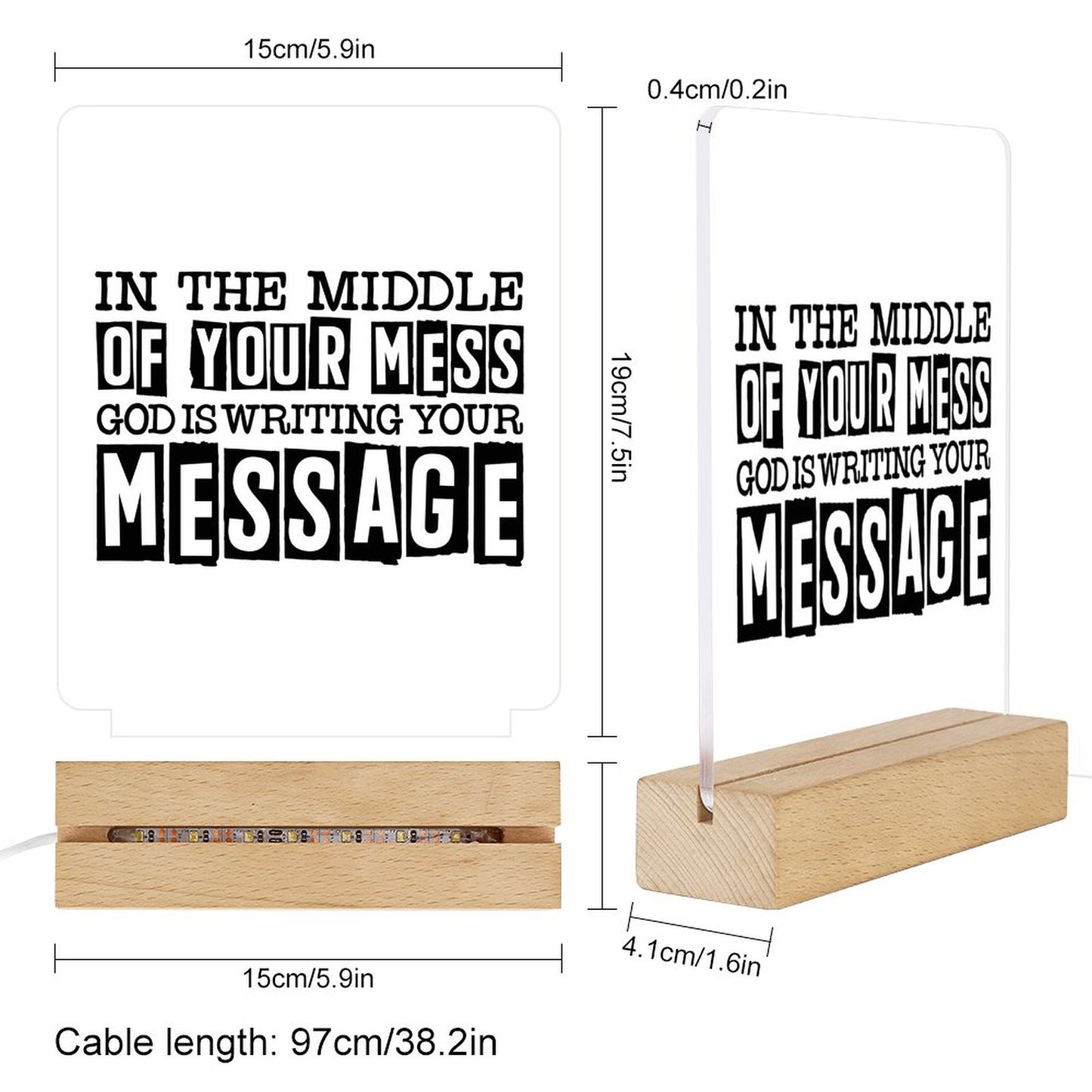 In The Middle Of Your Mess He Is Writing Your Message Christian Acrylic Night Light with Wooden Base Christian Gift Idea