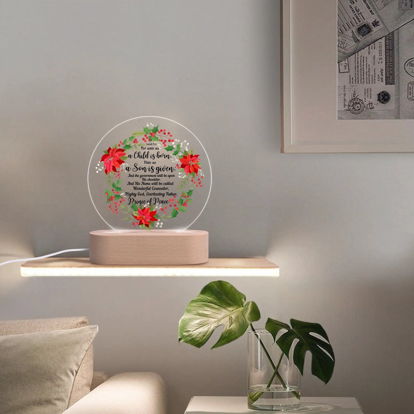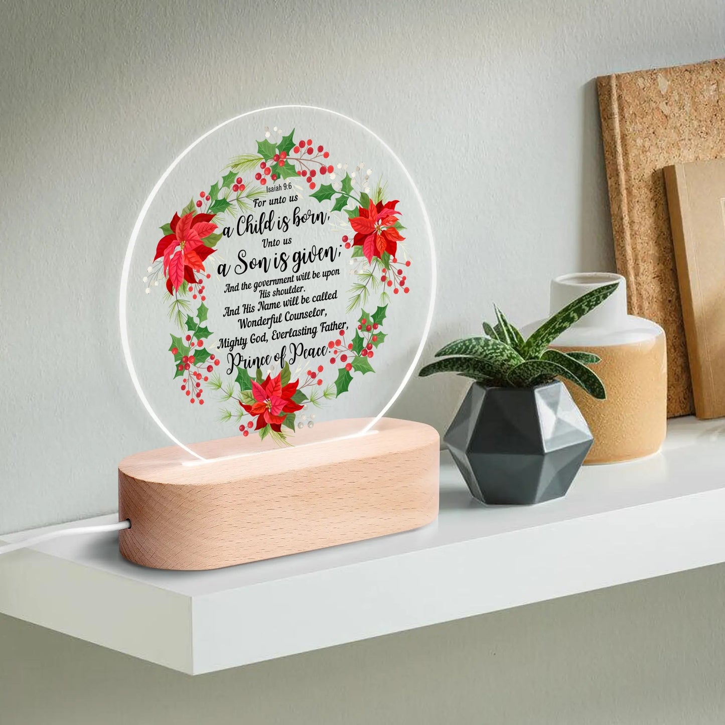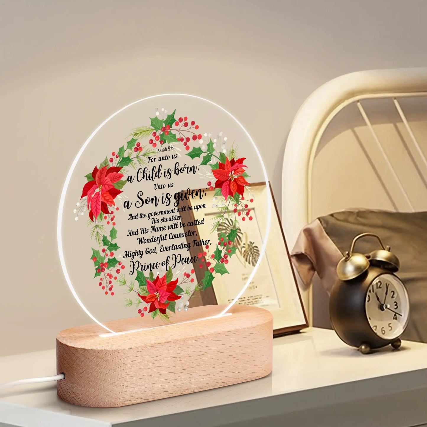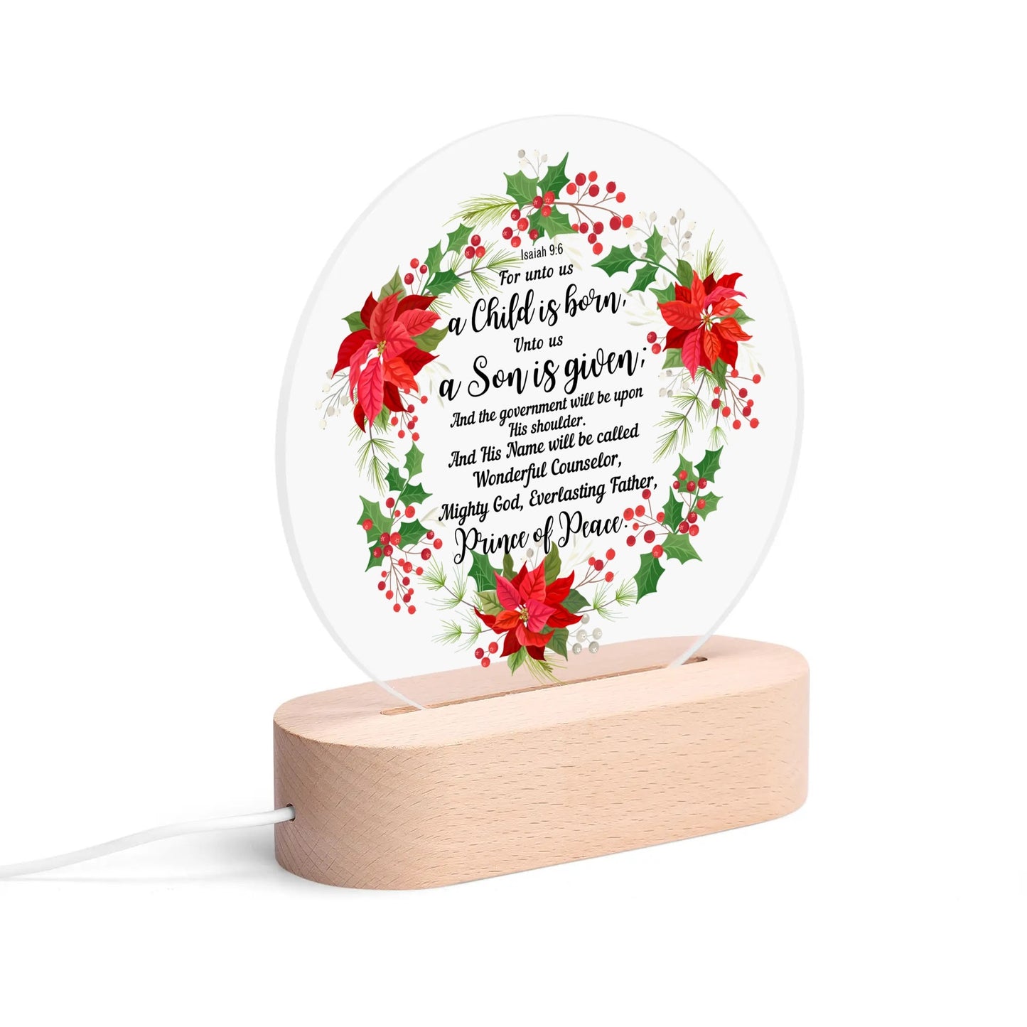 Isaiah 9:6 For Unto Us A Child Is Born (Christmas themed) Christian Acrylic Round Lamp Night Light Home DecorN2VXEX4N-1
