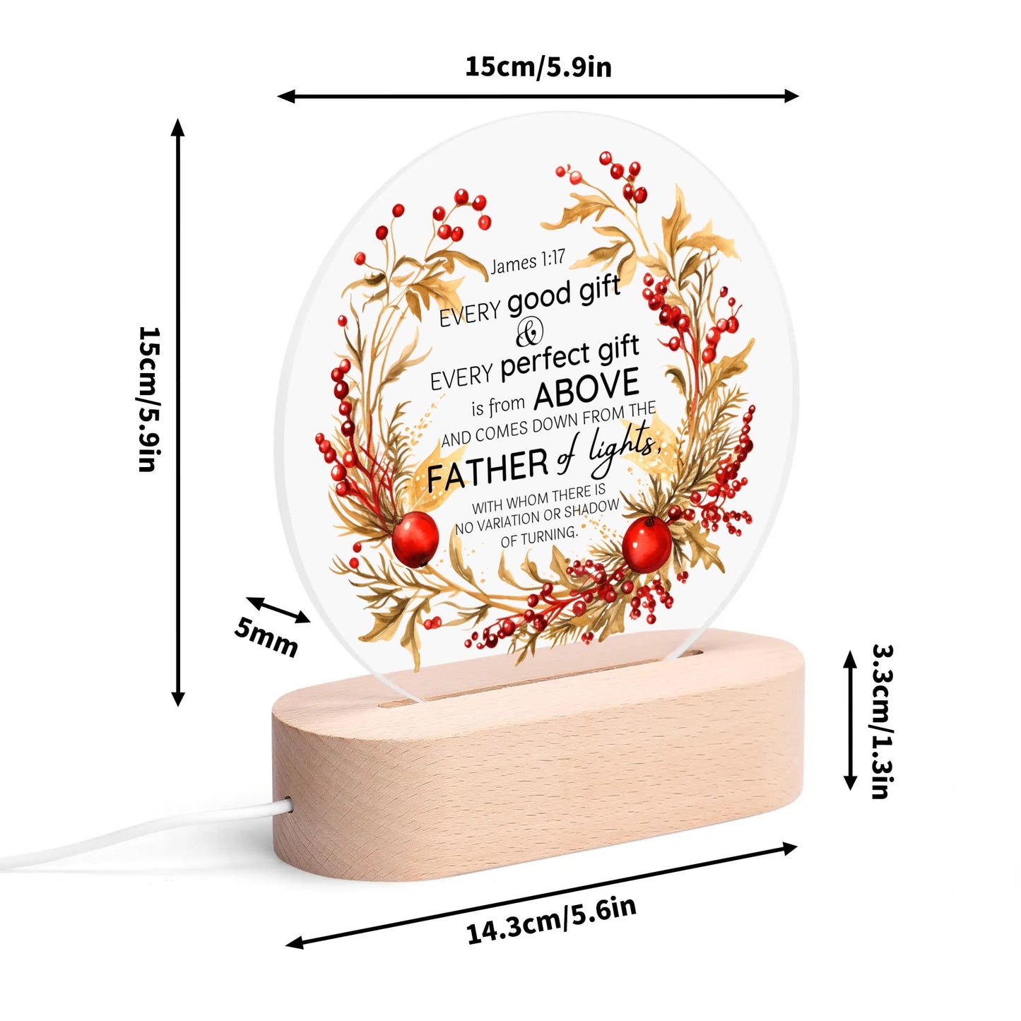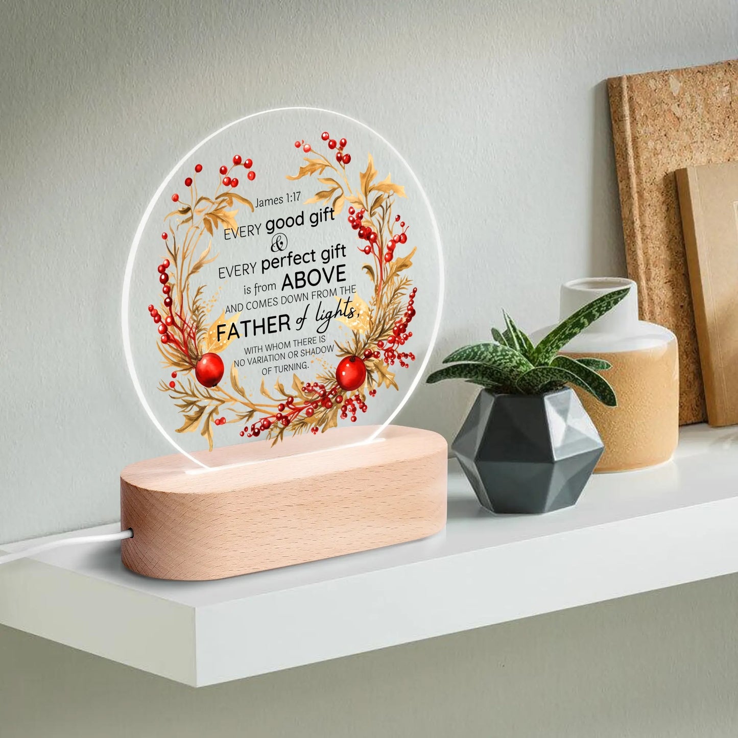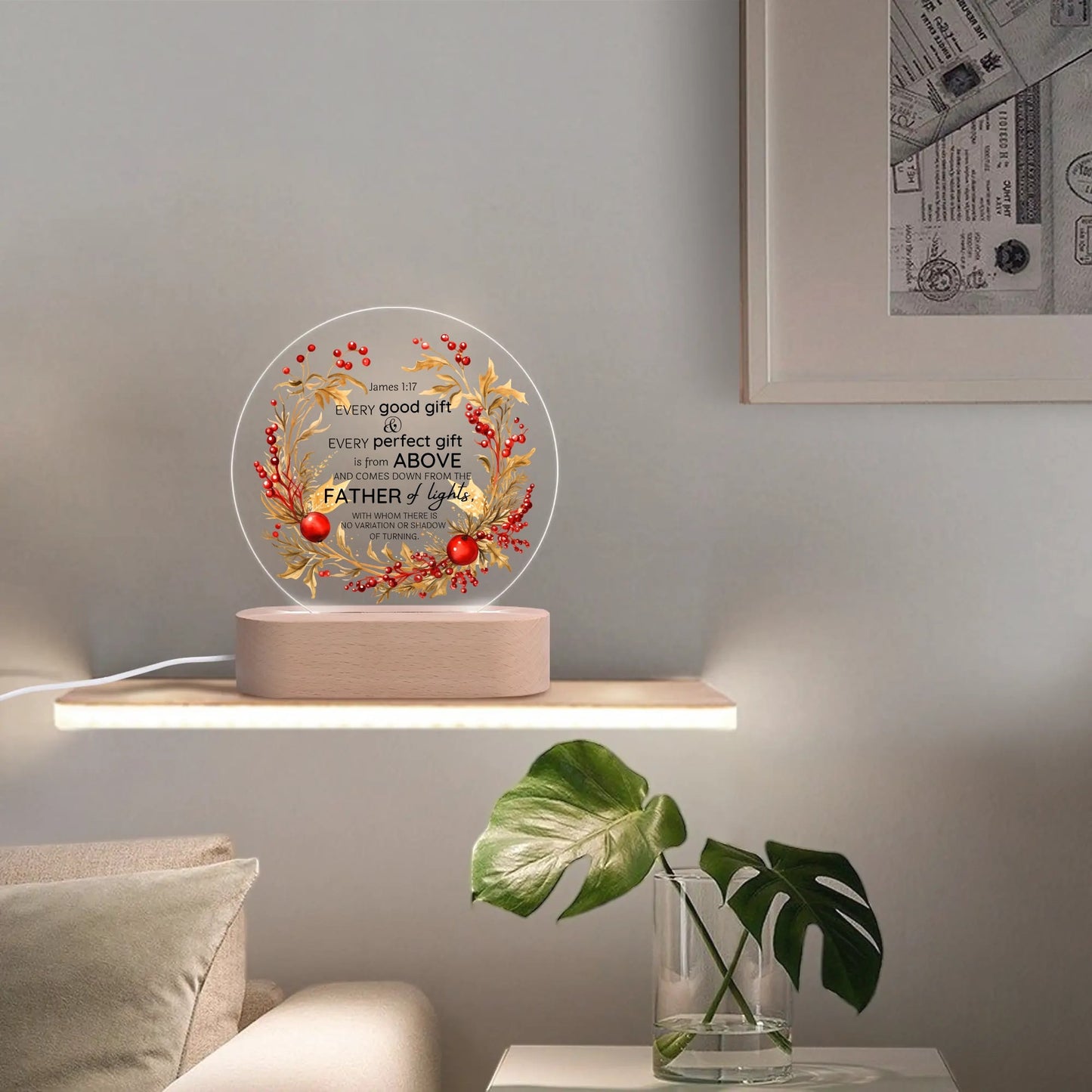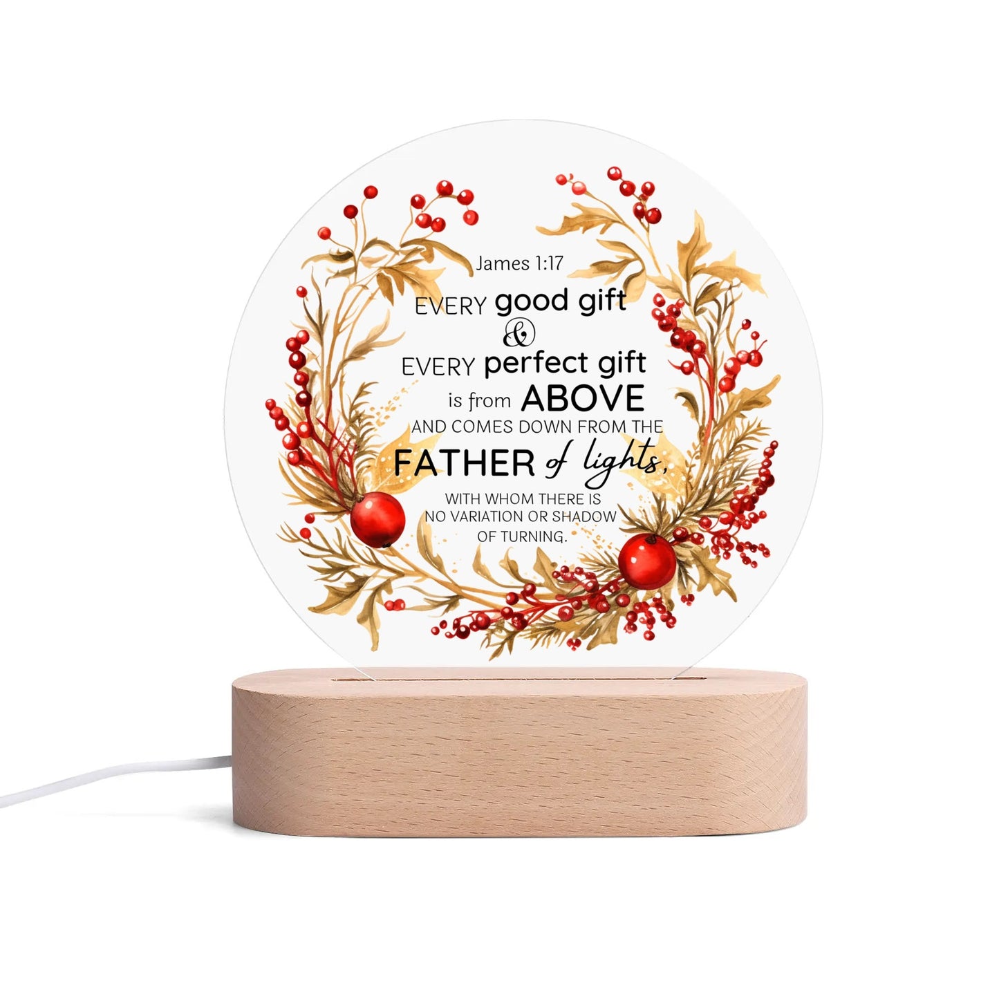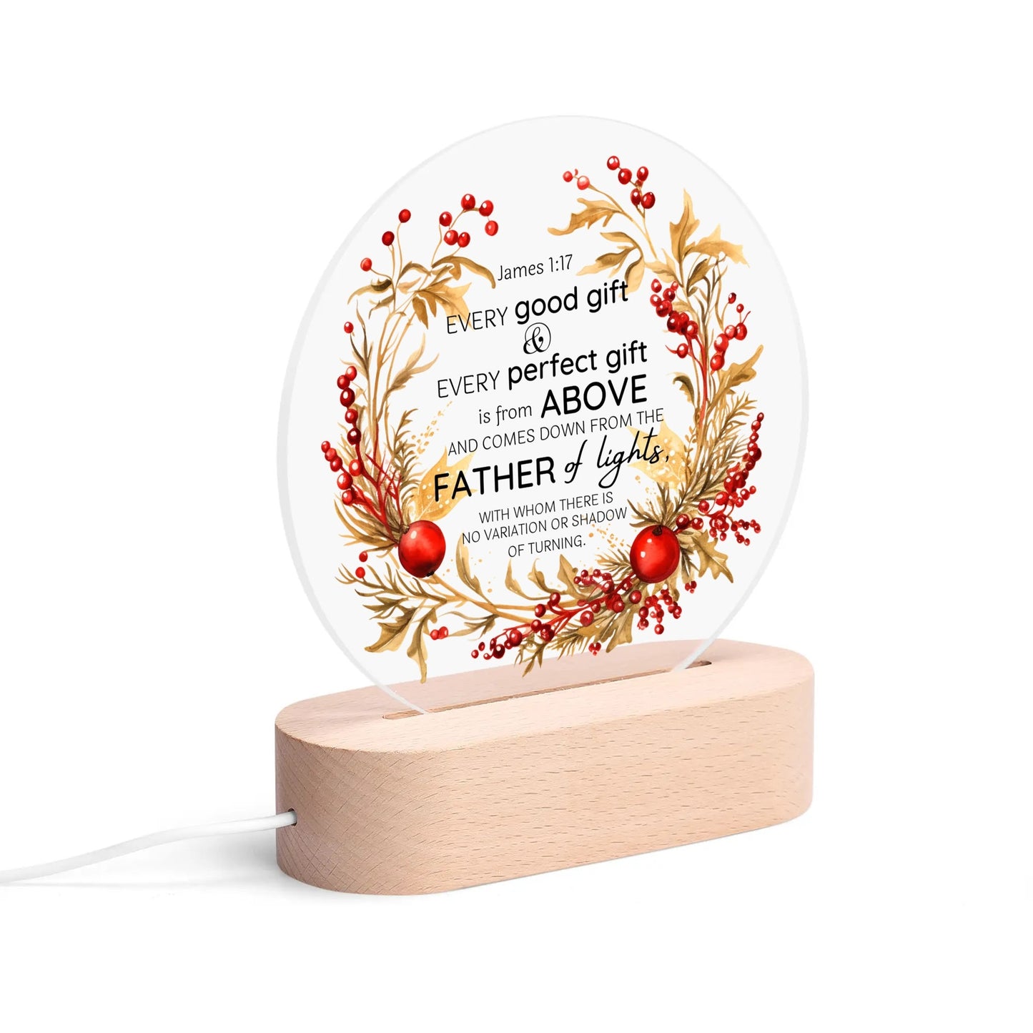 James 1:17 Every Perfect Gift Is From Above (Christmas Themed) Christian Acrylic Round Lamp Night Light Christian Gift Idea