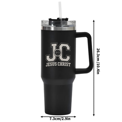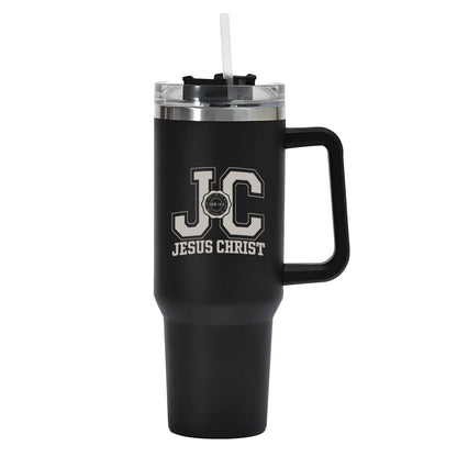 JC  Christ 40oz Stainless Steel Christian Tumbler Travel Mug with Handle and Straw for Cup Holder