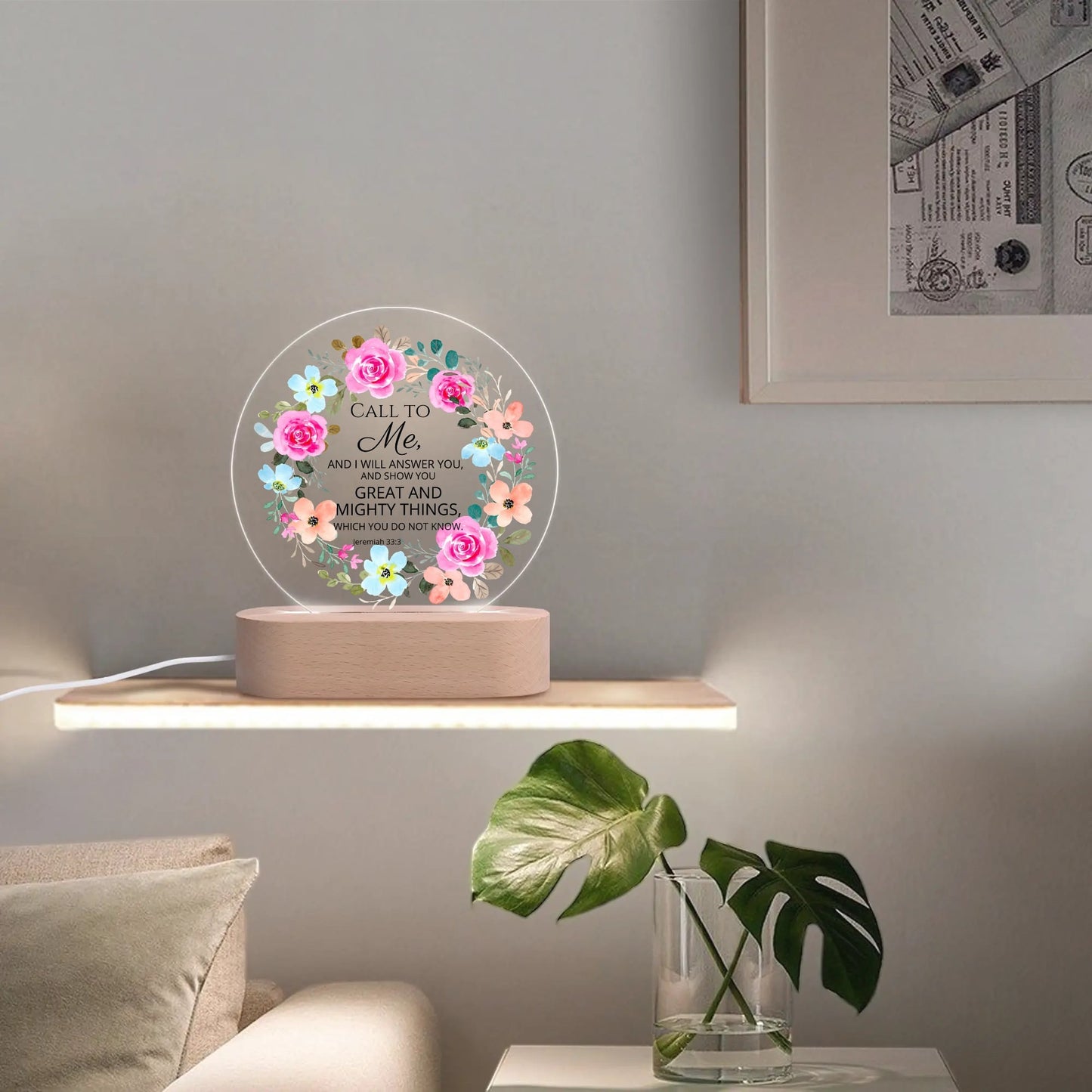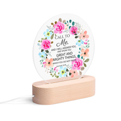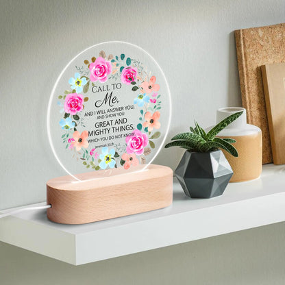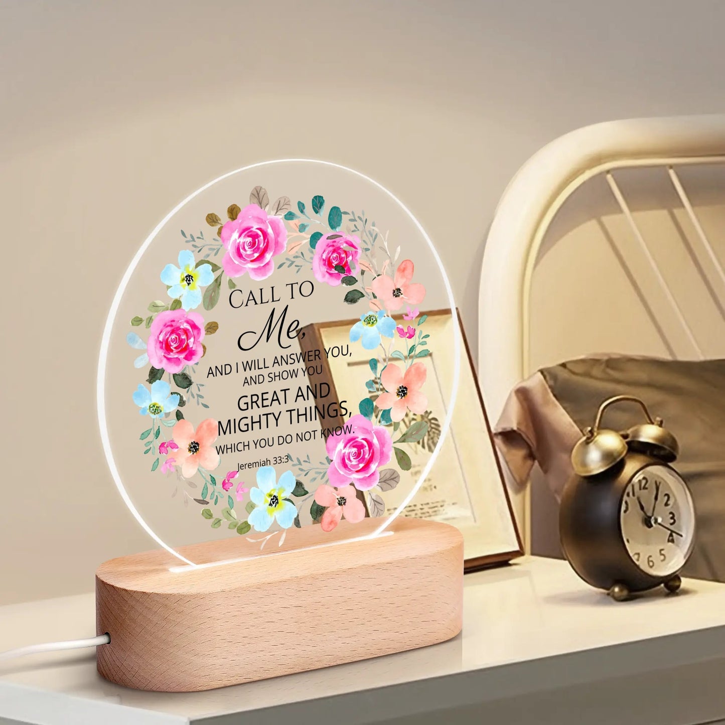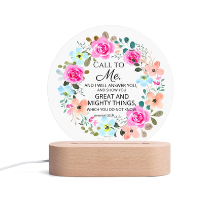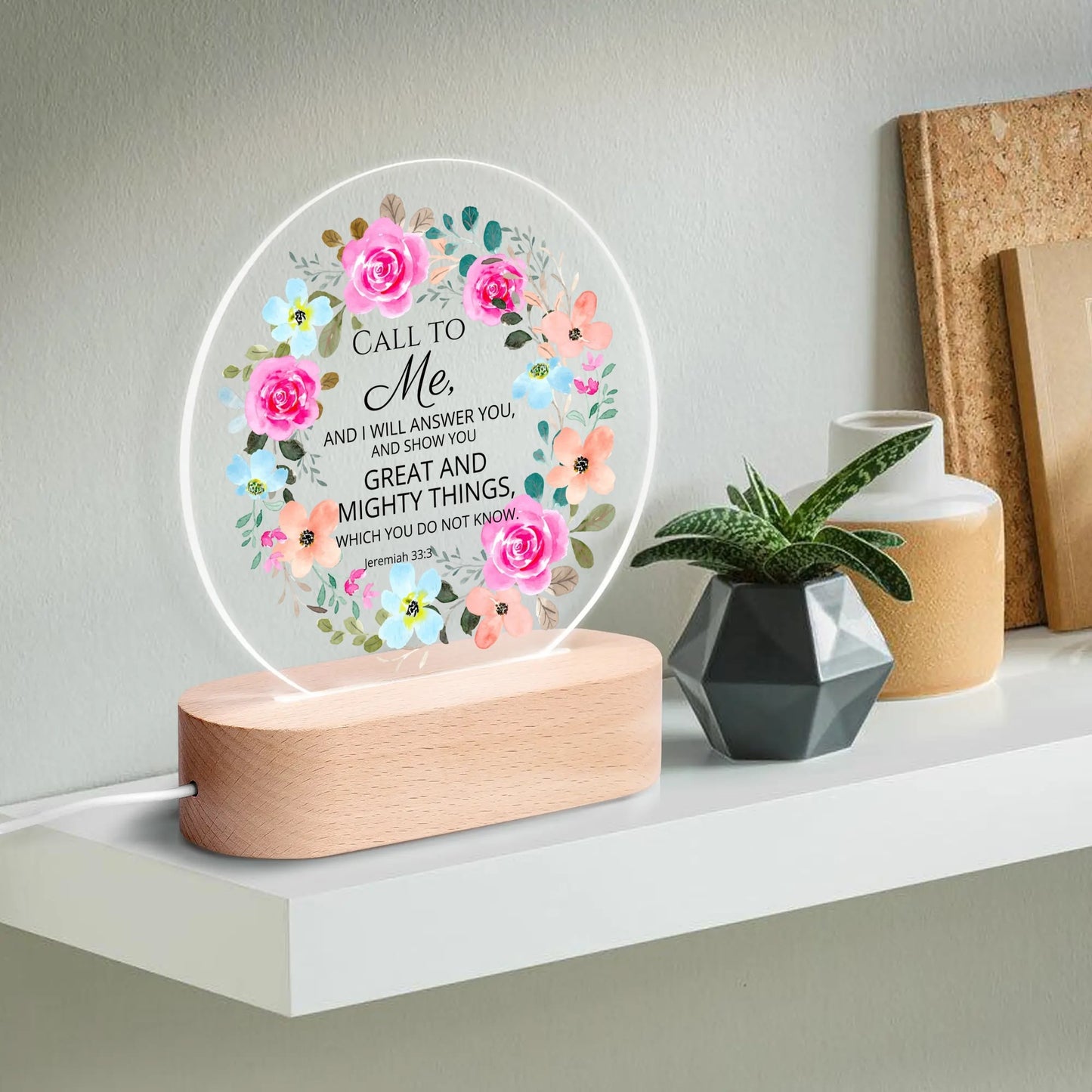 Jeremiah 33:3 Call To Me Acrylic Round Lamp Night Light Christian Gift Idea