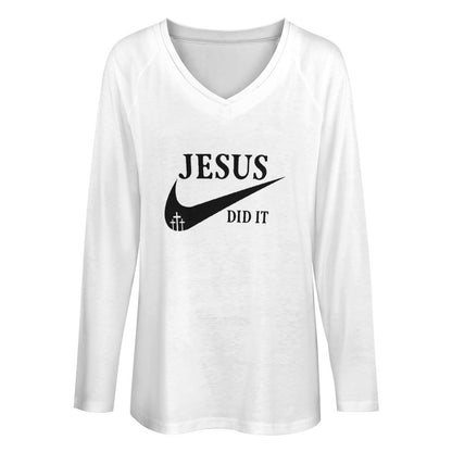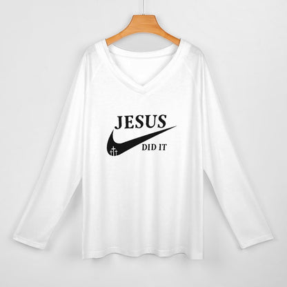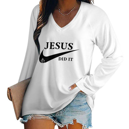 He Did It V Neck Women's Christian Pullover Sweatshirt