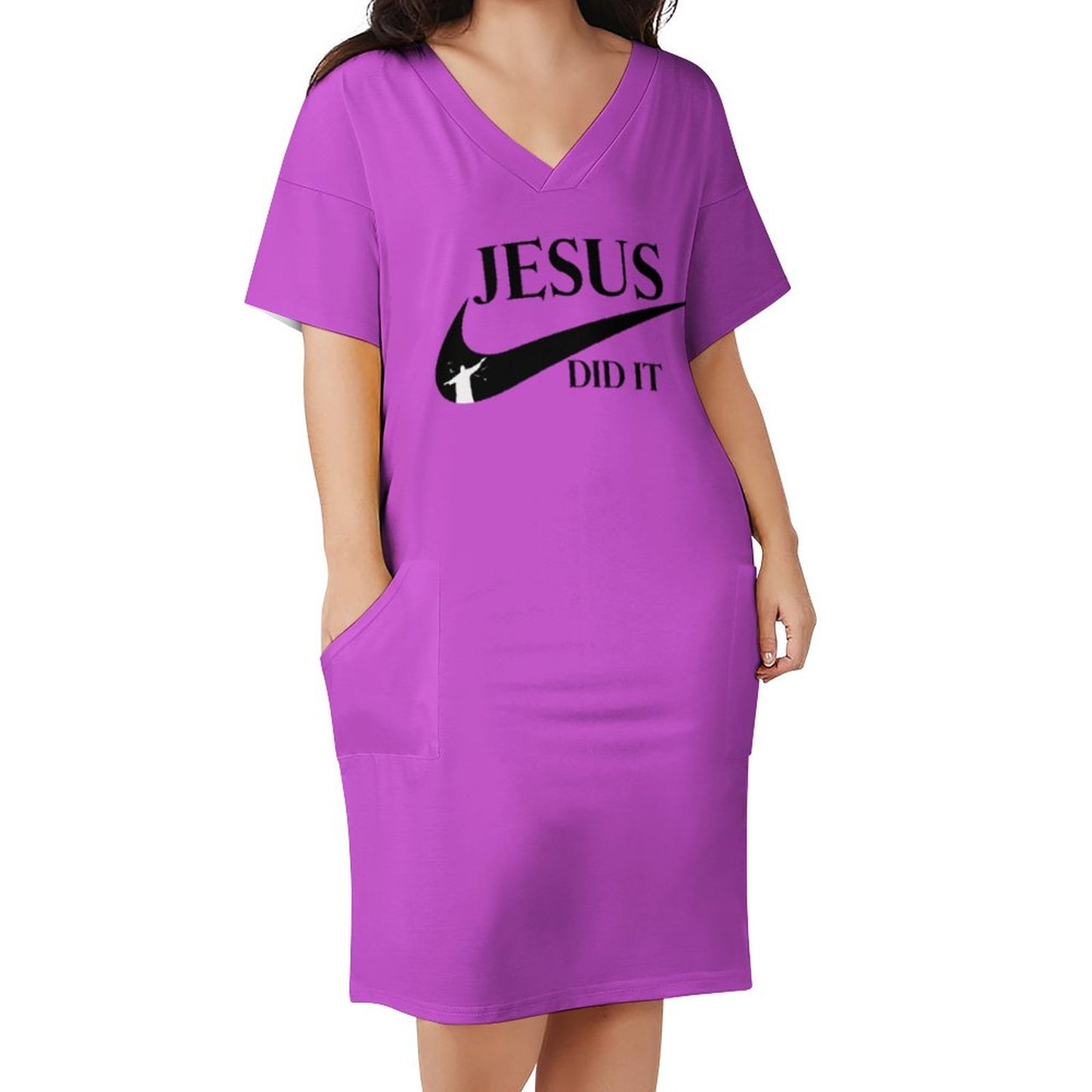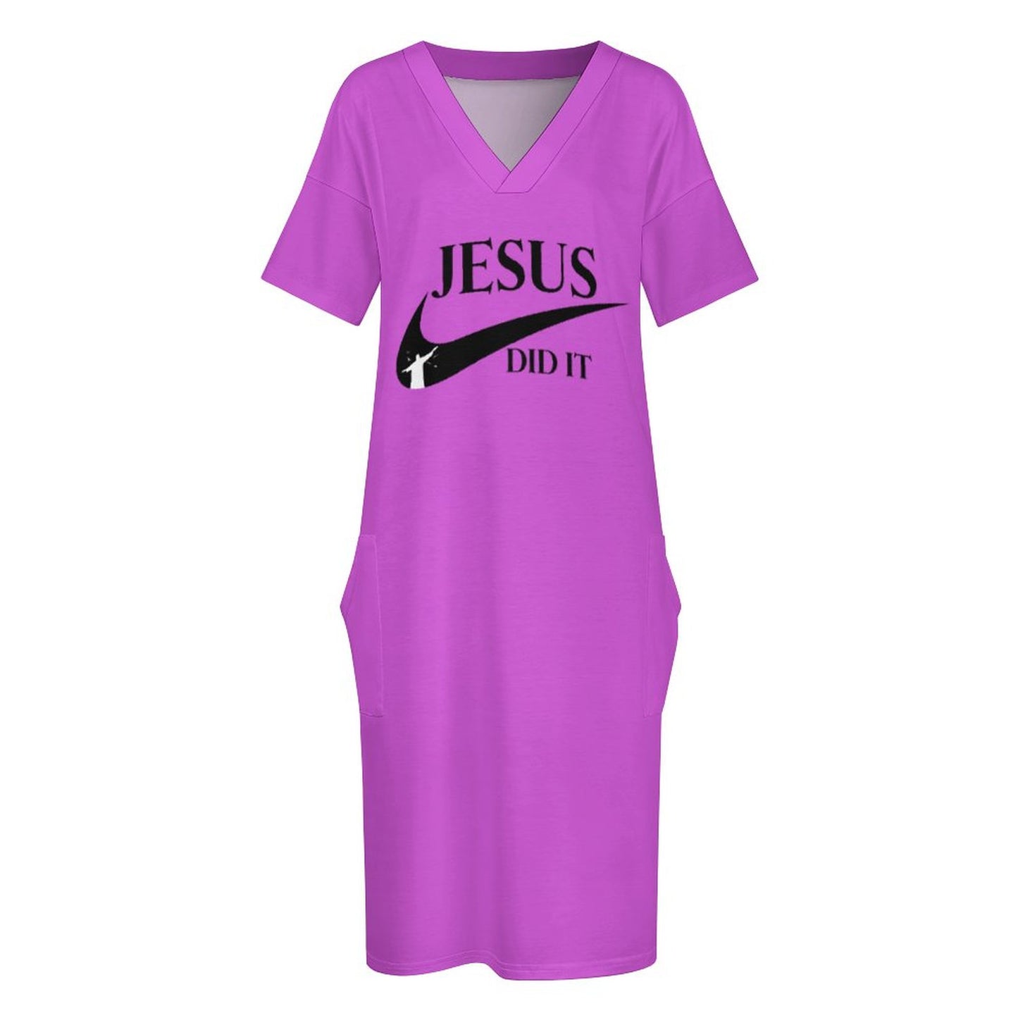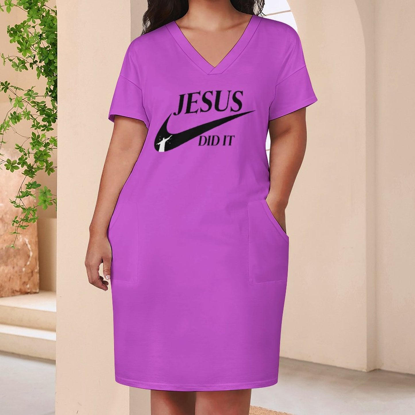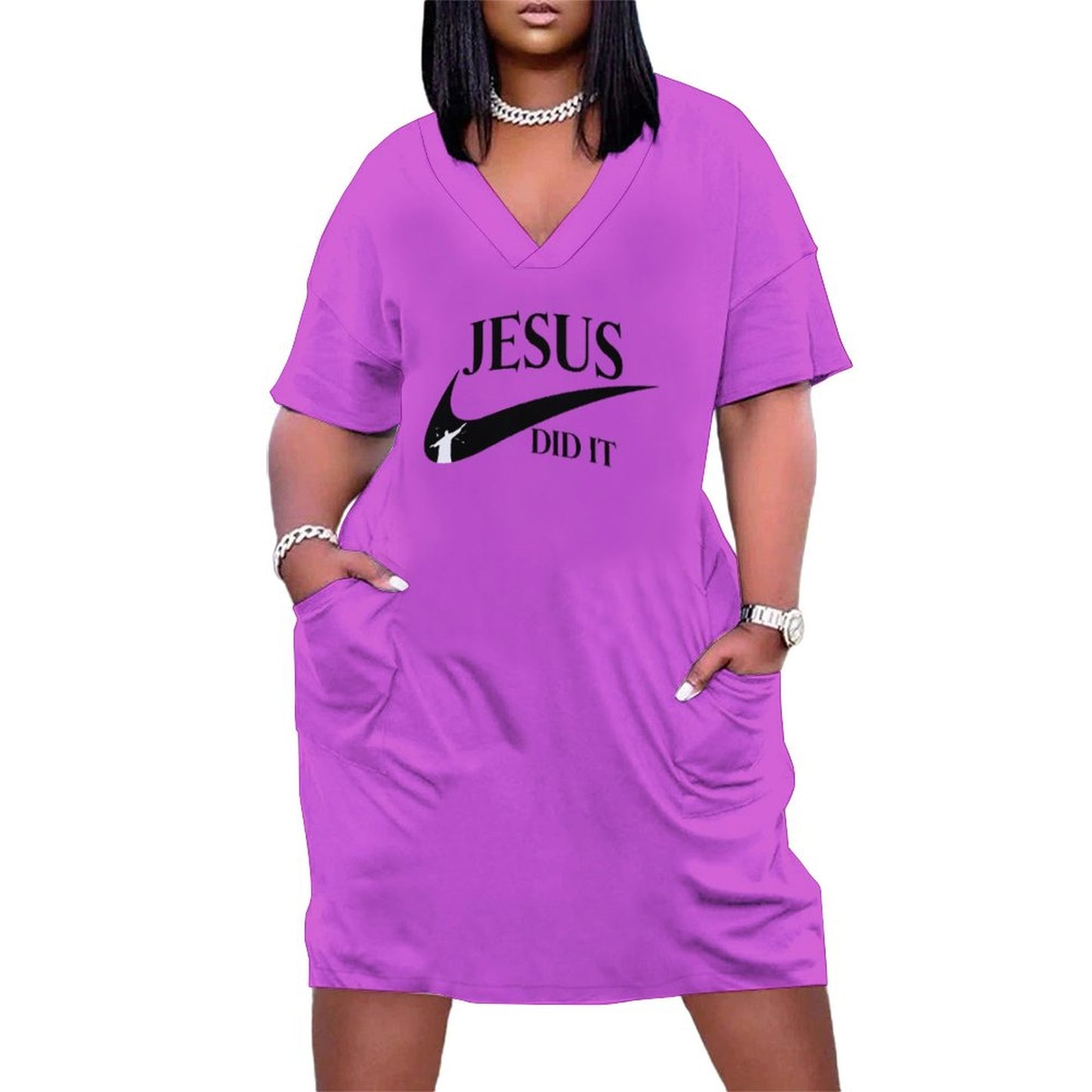 V-Neck Baggy Dress with Pocket LQ