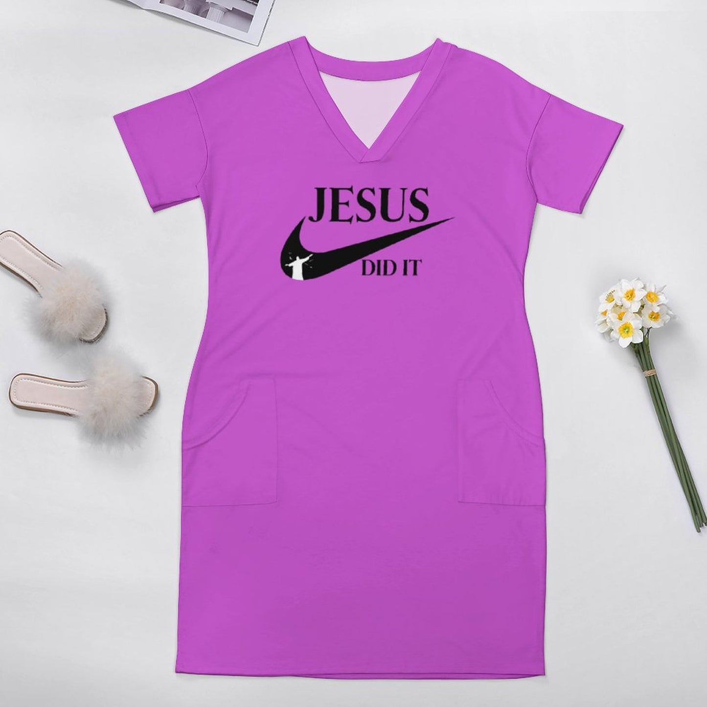 He Did It Women's Christian Casual Dress
