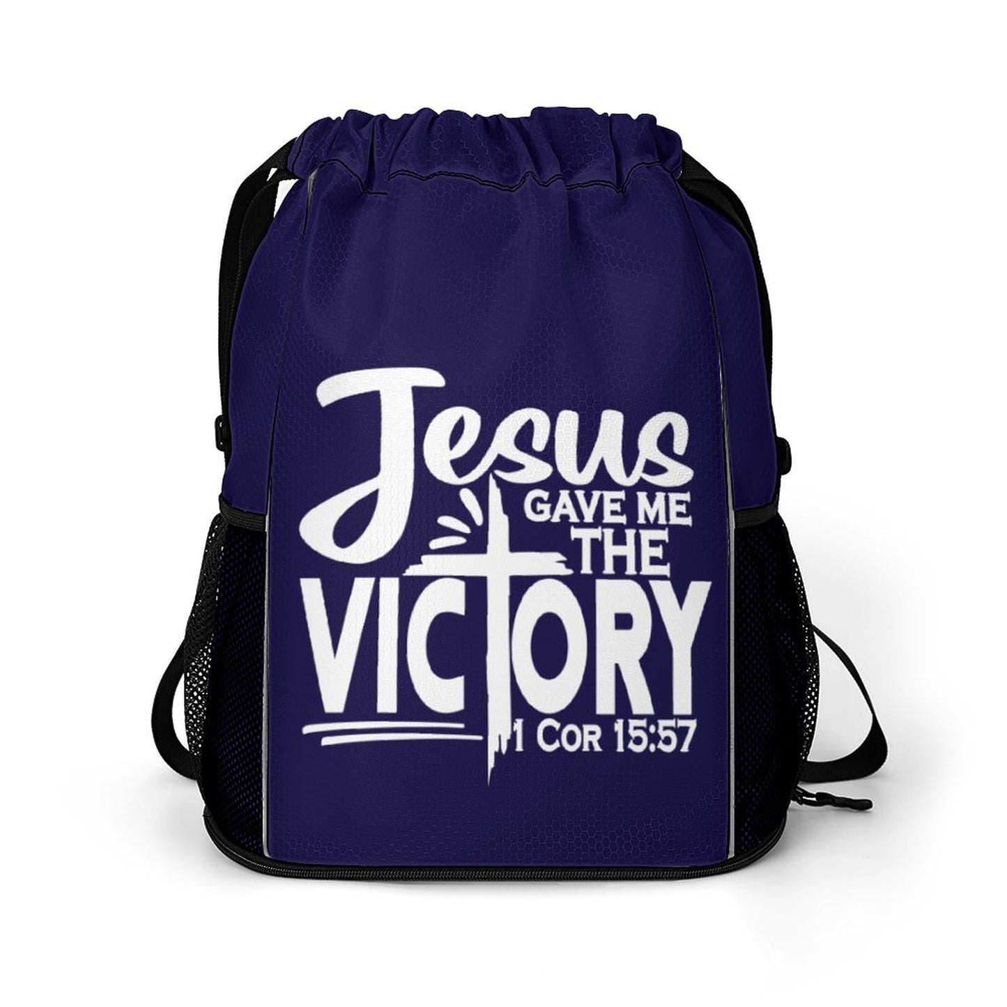 He Gave Me The Victory Christian Waffle Cloth Drawstring Bag