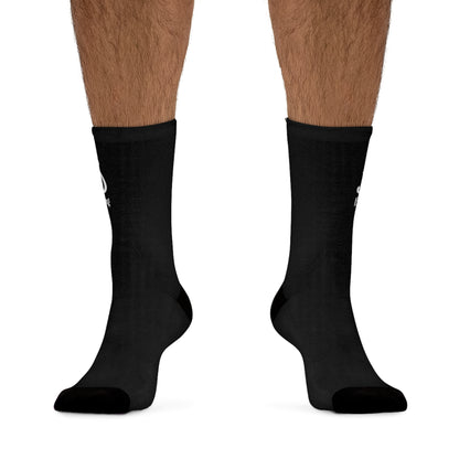 These socks are made using a proprietary blend of yarns specially sourced by Tribe Socks. They are 200 needle knit crew made from 58% Recycled Polyester 22% Nylon 15% Cotton and 5% Elastane. They are a true one size fits most, and are available up to size 12 Men's (U.S.). These socks have an unprecedented amount of stretch with durable print quality.