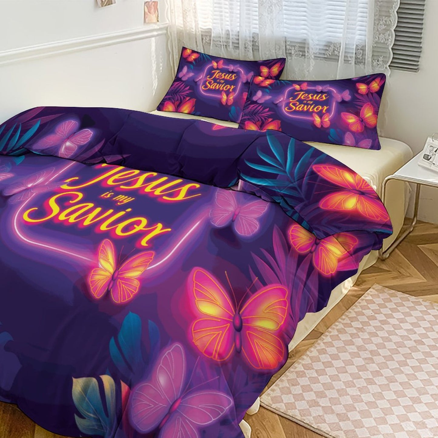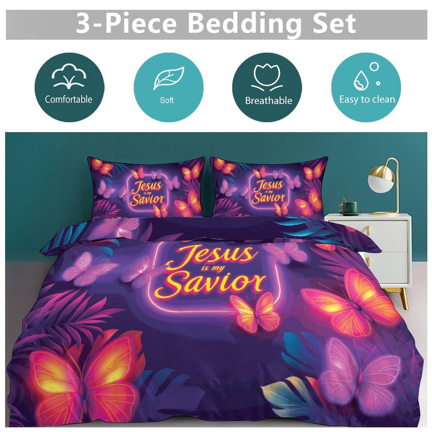 Jesus Is My Savior 3-Piece Christian Comforter  Bedding Set-86"×70"/ 218×177cm SALE-Personal Design