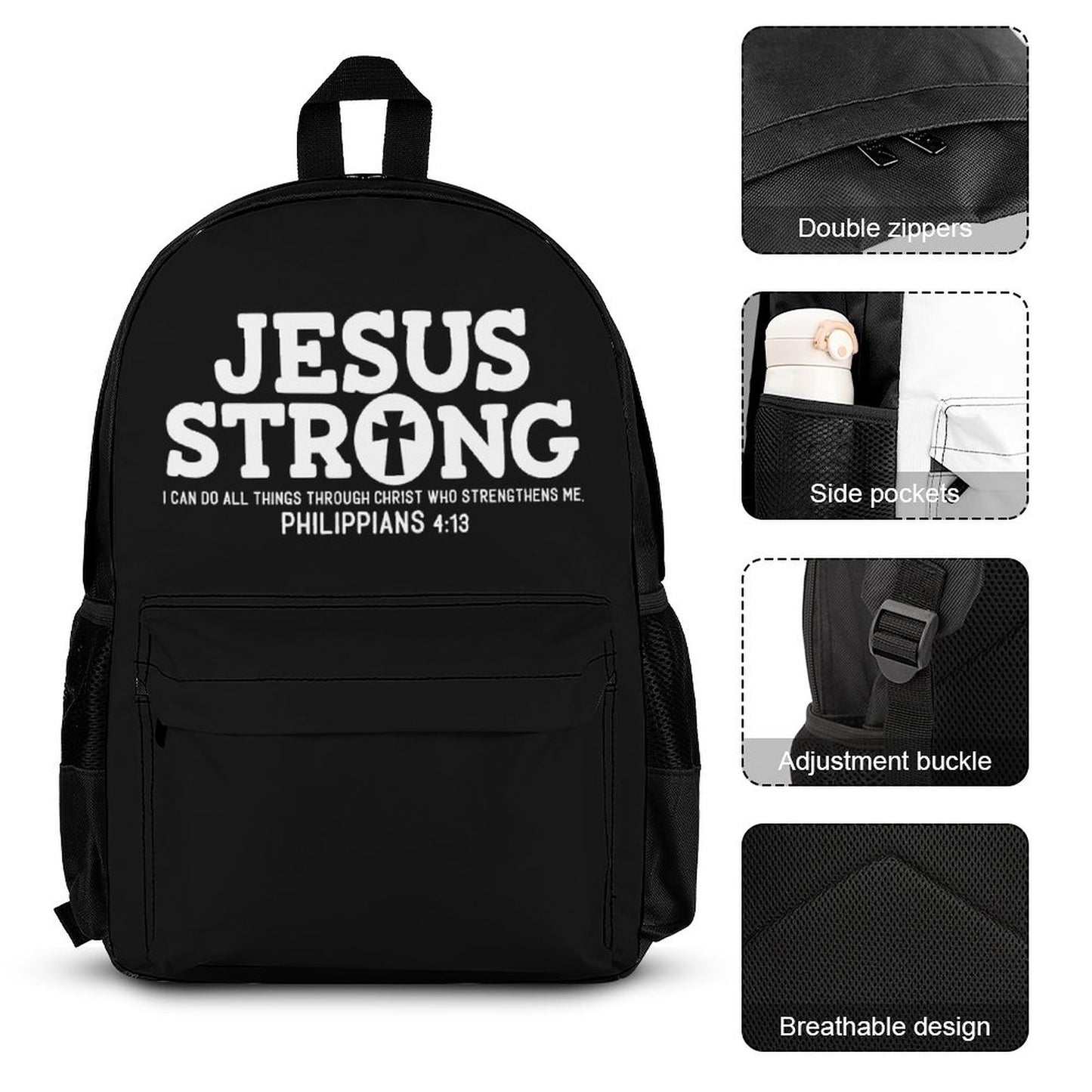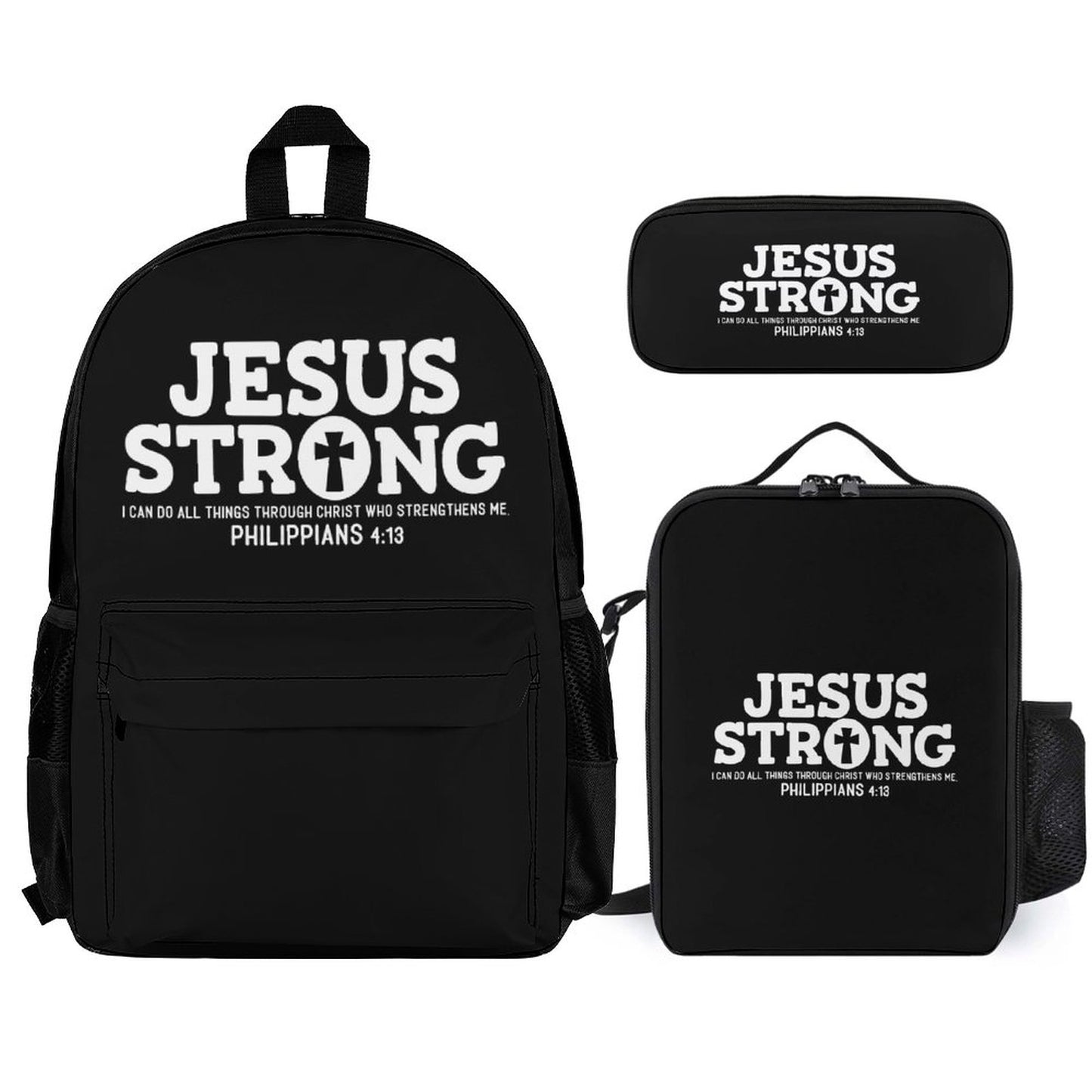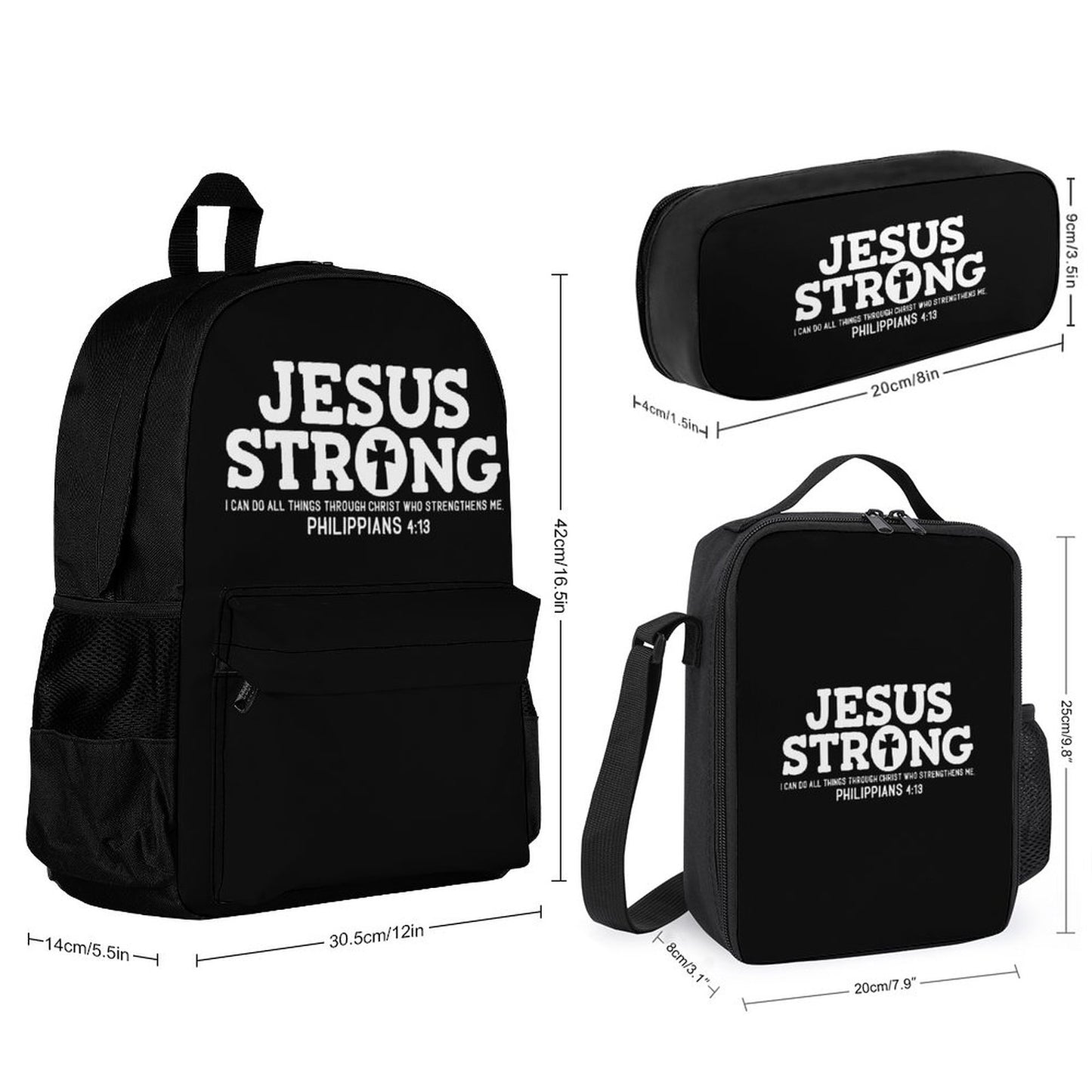 Strong I Can Do All Things Through Christ Christian Backpack Set of 3 Bags (Shoulder Bag Lunch Bag & Pencil Pouch)