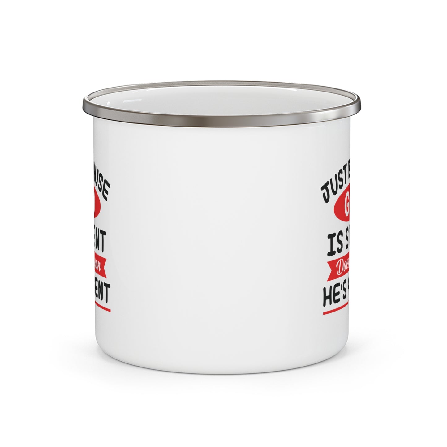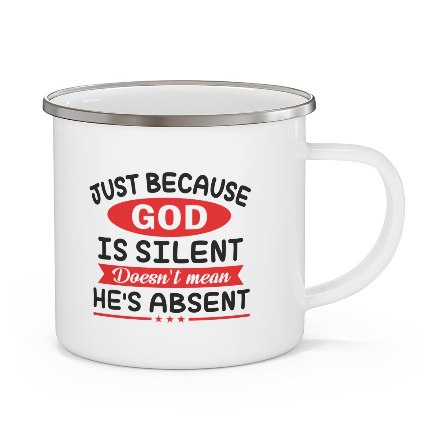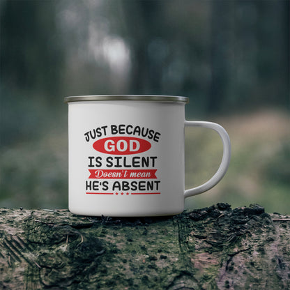Just Because He Is Silent Doesn't Mean He's Absent Christian Enamel Camping Mug 12oz