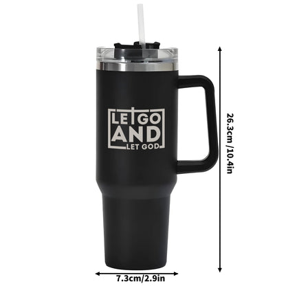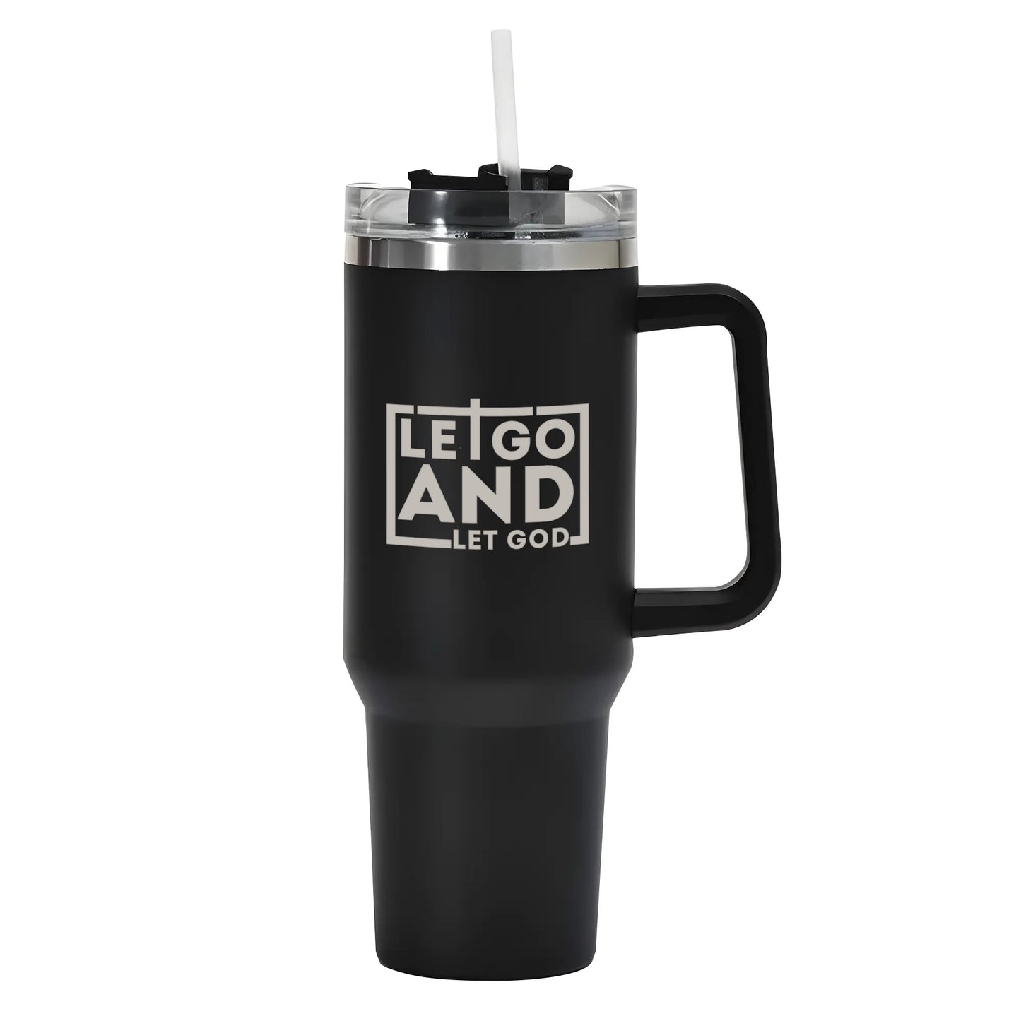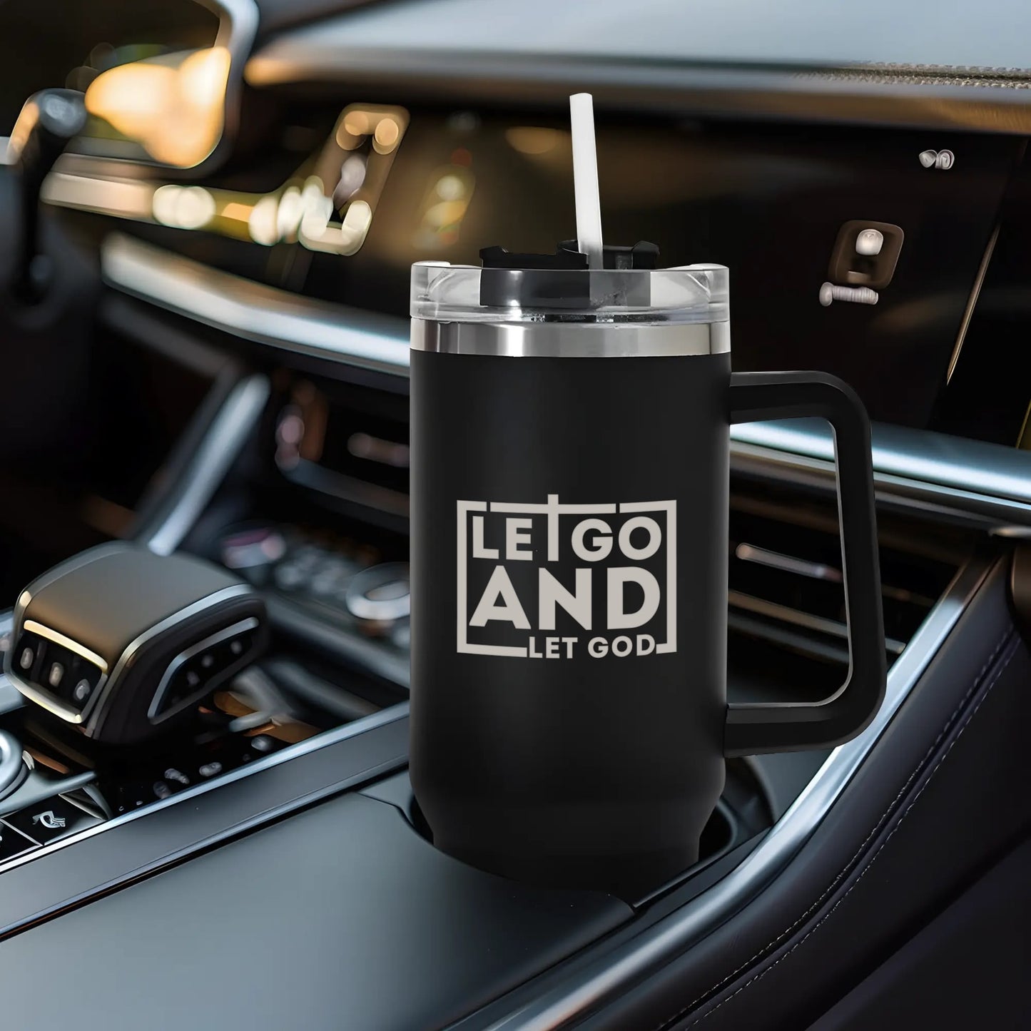 Let Go 40oz Stainless Steel Christian Tumbler Travel Mug with Handle and Straw for Cup Holder