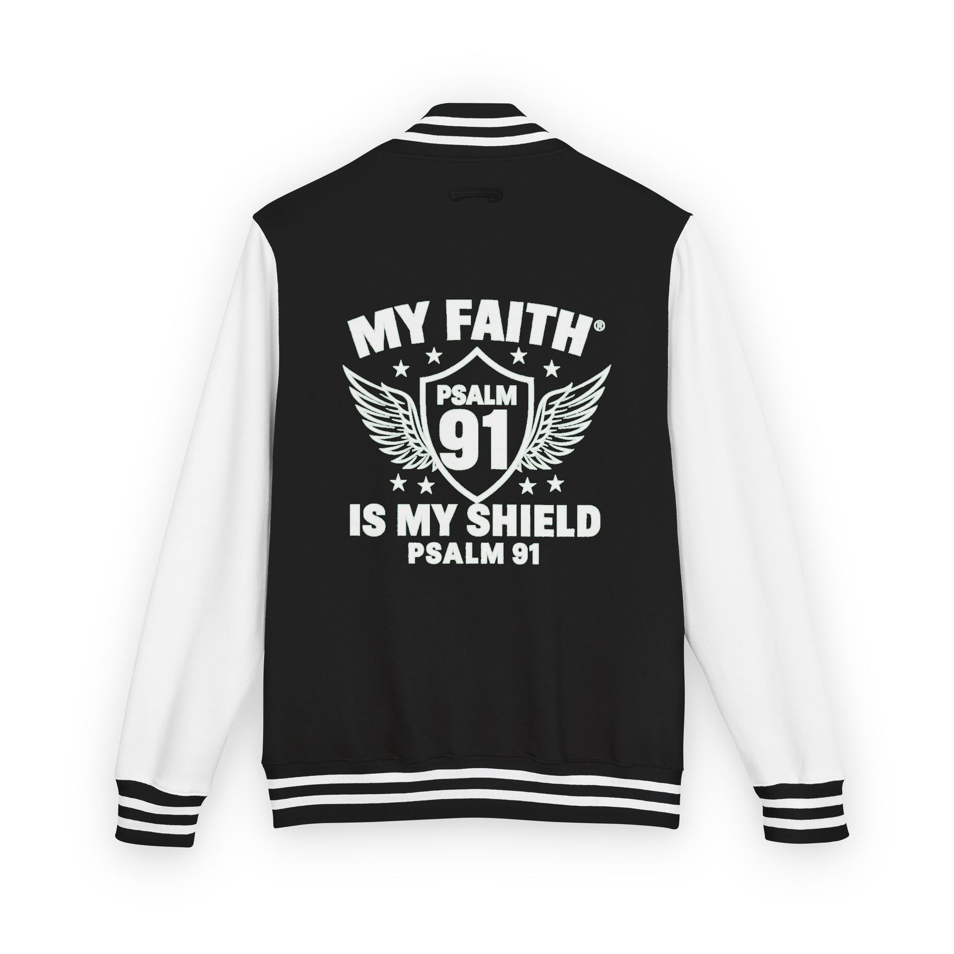 Letterman Jacket — “My Faith Is My Shield” 91 Vintage Varsity Jacket
