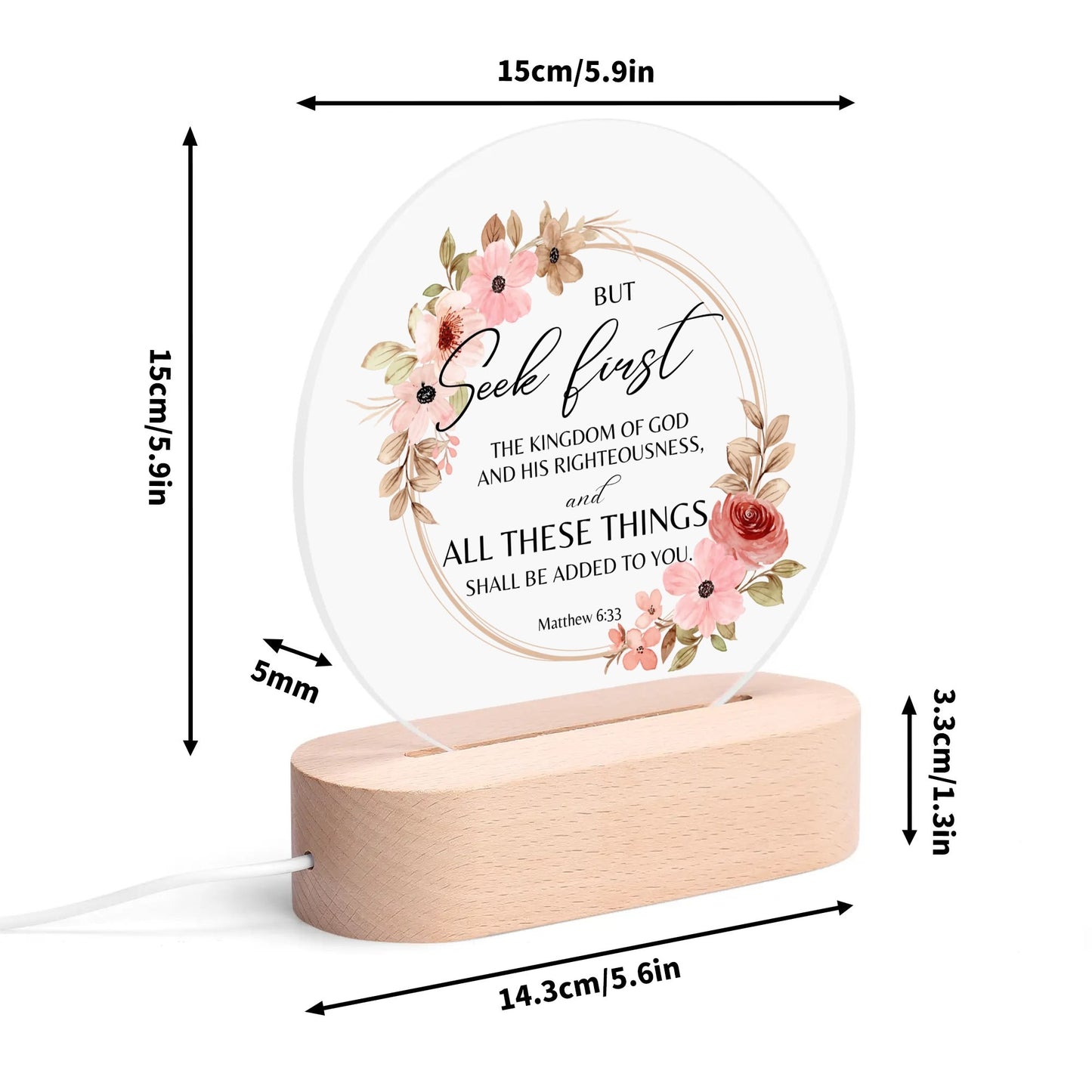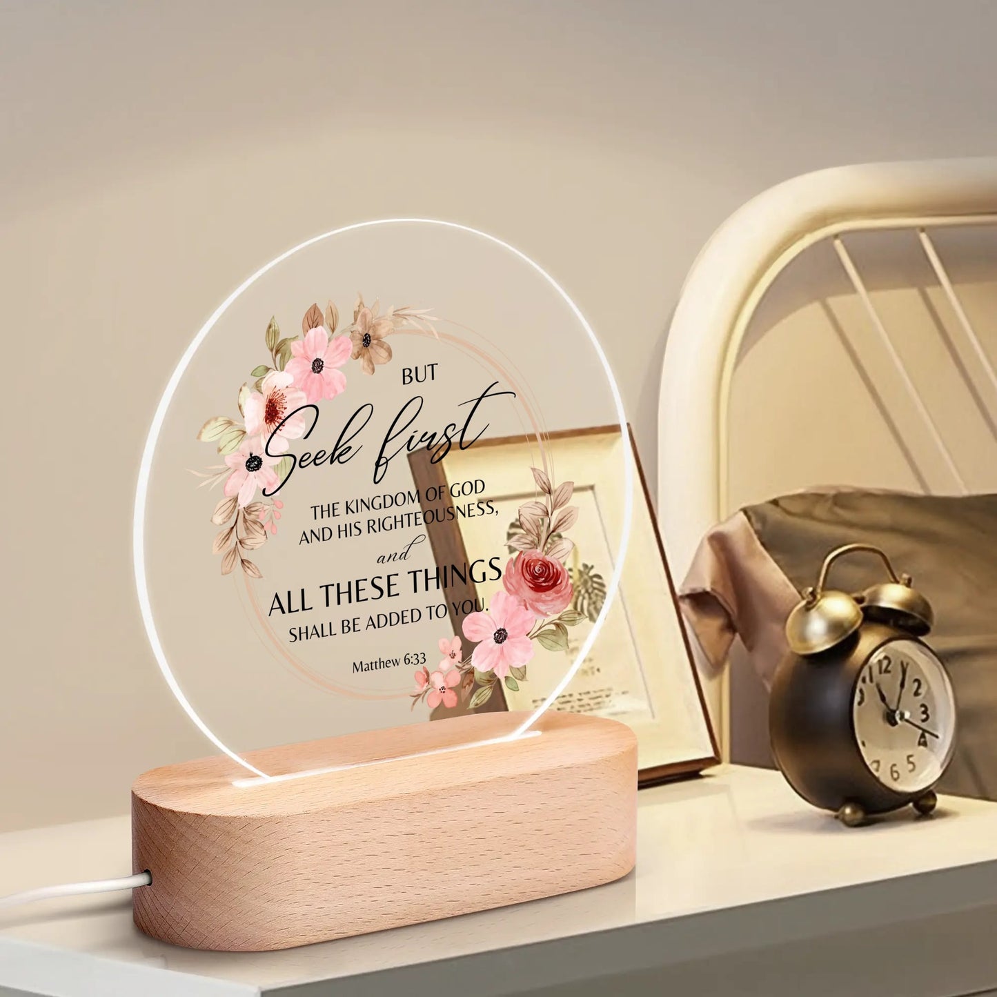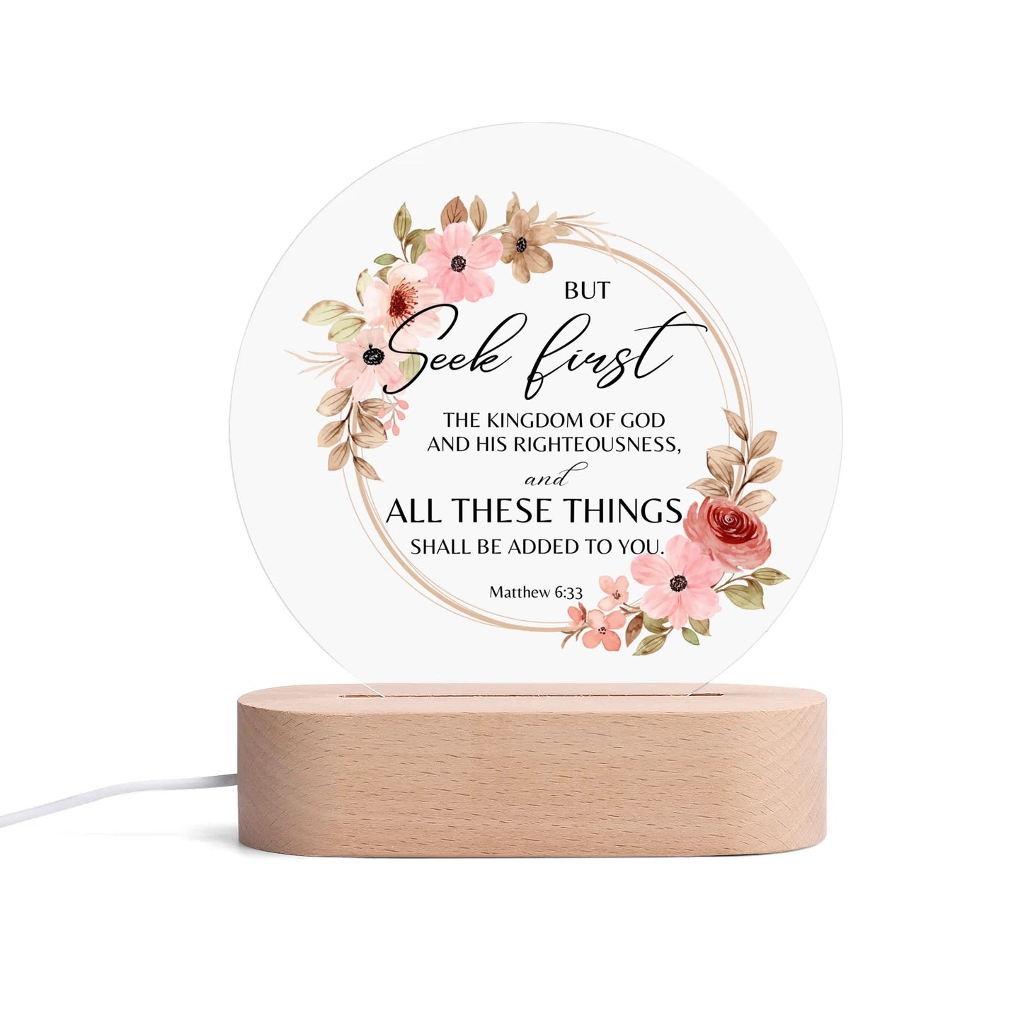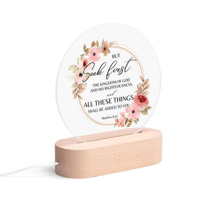 Matthew 6:33 But Seek First The Kingdom Of Christian Acrylic Round Lamp Night Light Christian Gift IdeaY535M1MN-1