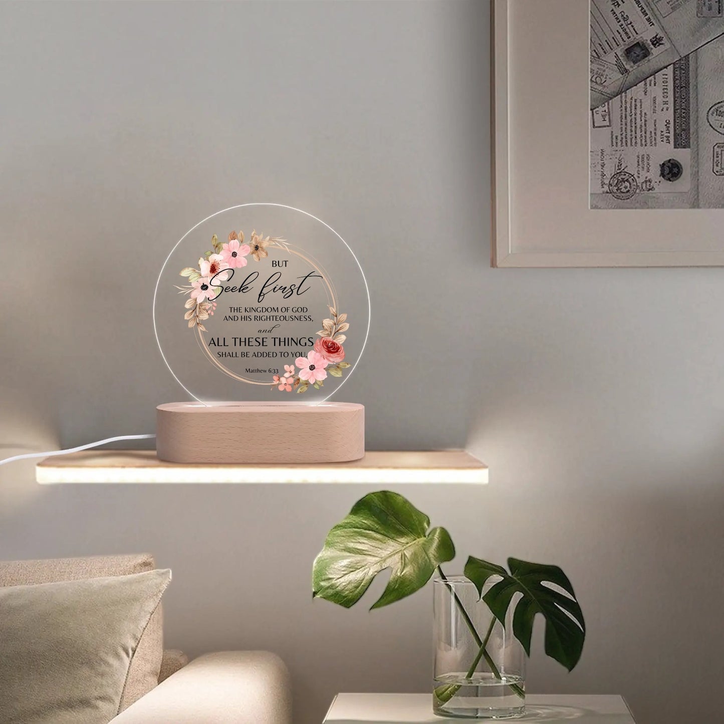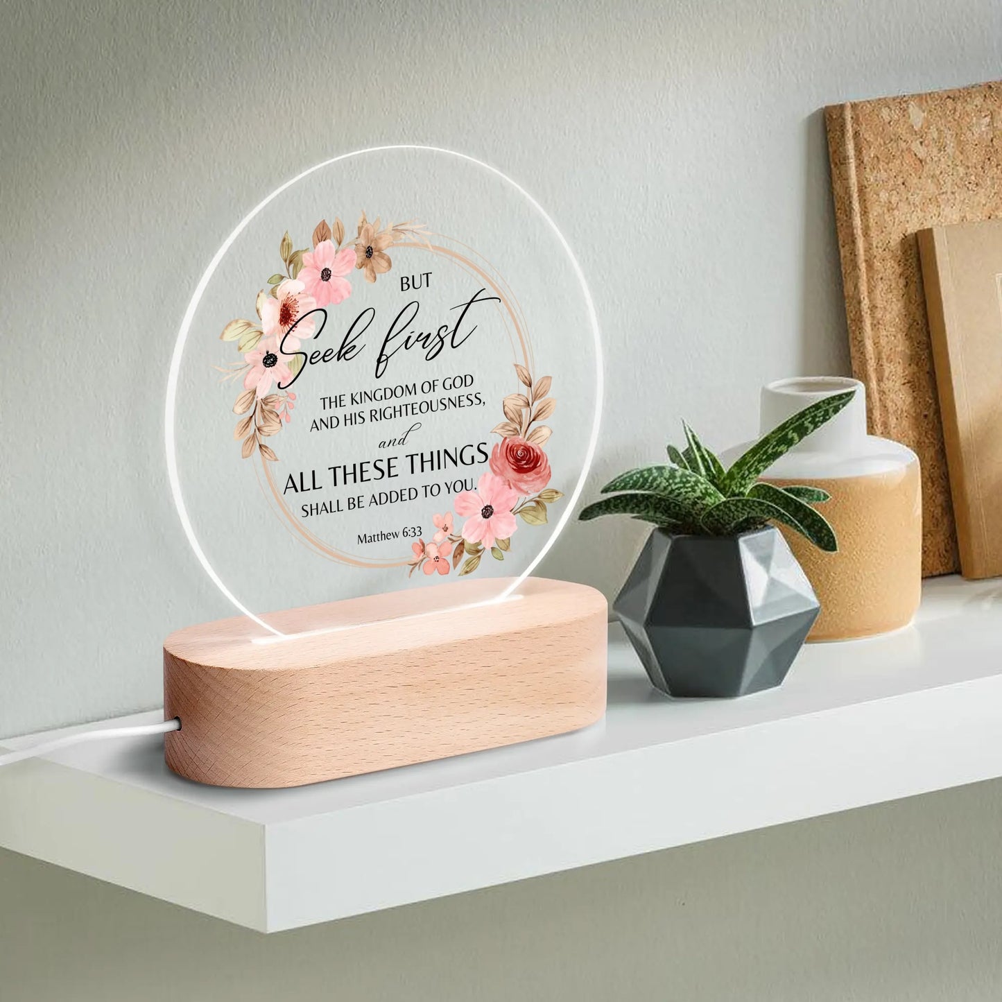 Matthew 6:33 But Seek First The Kingdom Of  Christian Acrylic Round Lamp Night Light Christian Gift Idea