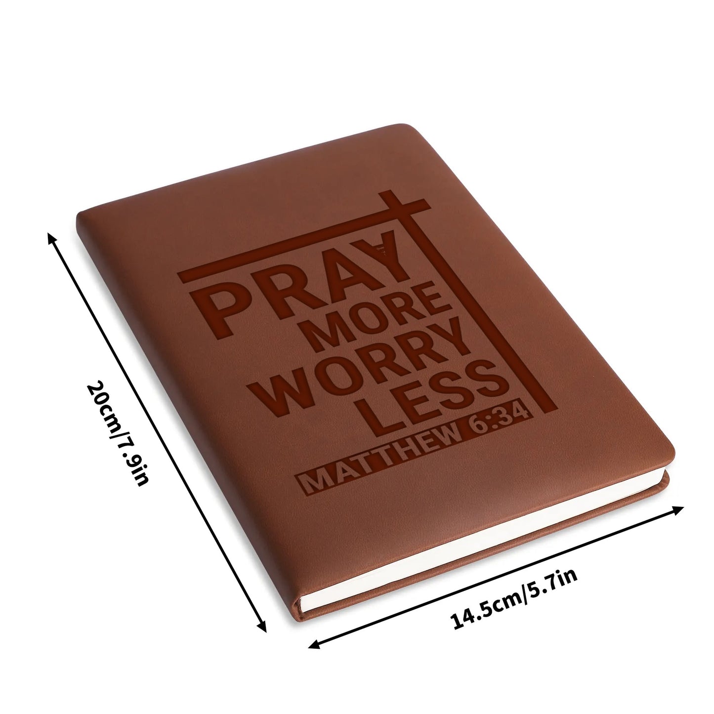 Matthew 6:34 Pray More Worry Less Engraved Brown Christian Journal Diary Gift for Friends FamilyW0625E5W-1