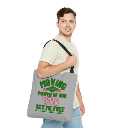 Moving In His Power Who Set Me Free Christian Tote Bag