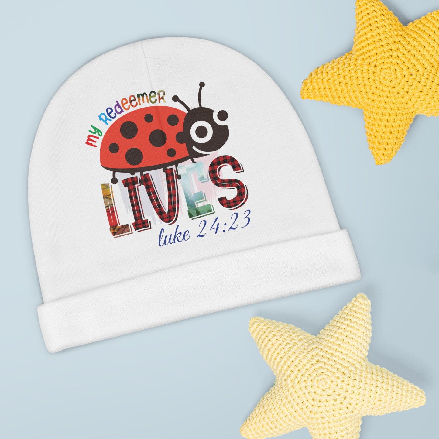- This baby beanie hat is an ideal inclusion for colder months and for rocking your faith in style. The 100% polyester build is designed with comfort in mind. Sized for infants up to roughly 6 months old