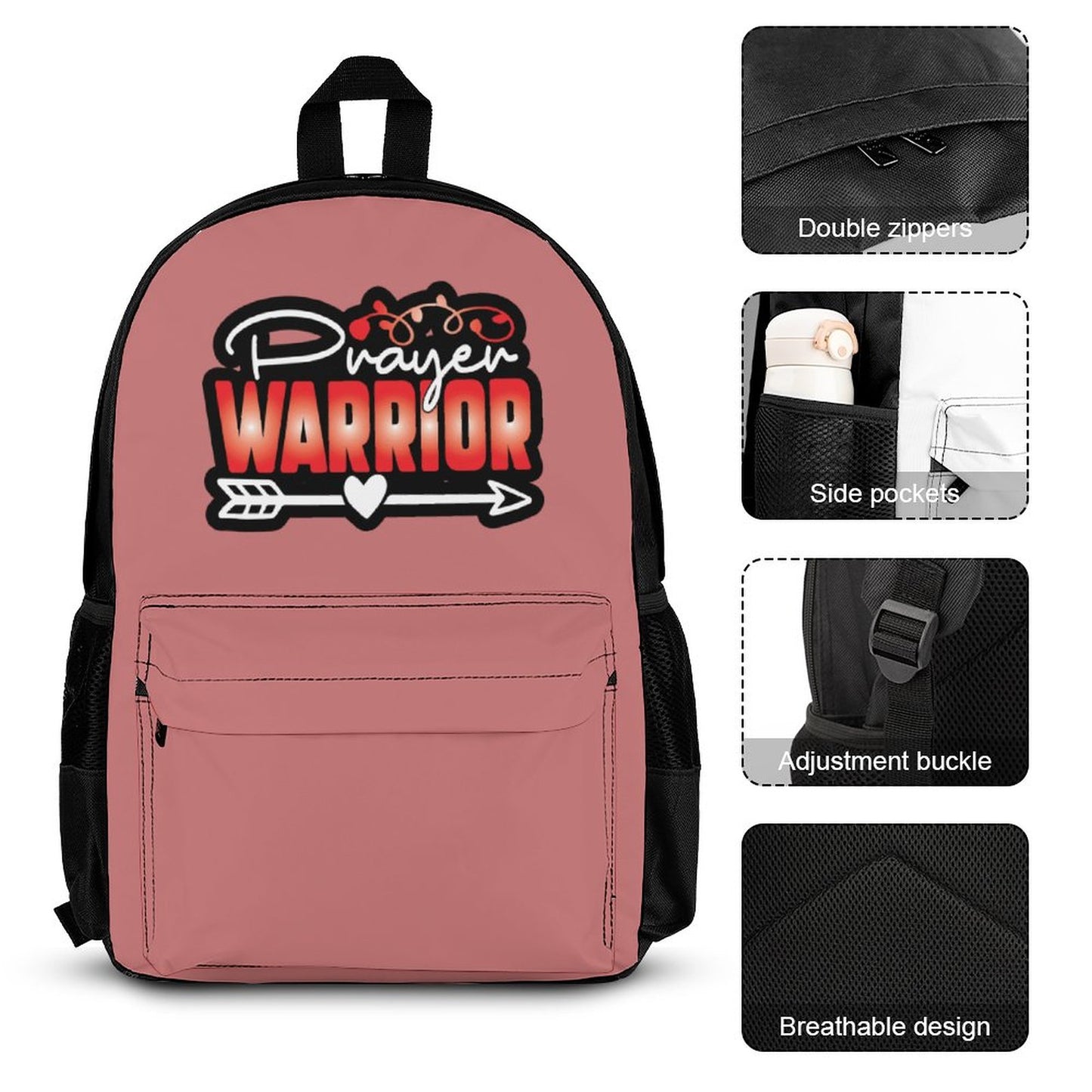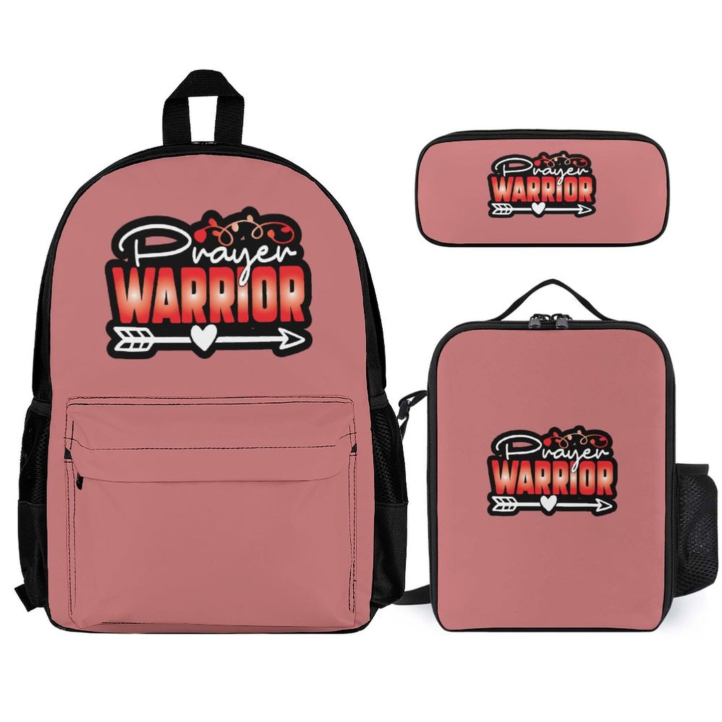 Prayer Warrior Christian Backpack Set of 3 Bags (Shoulder Bag Lunch Bag & Pencil Pouch)