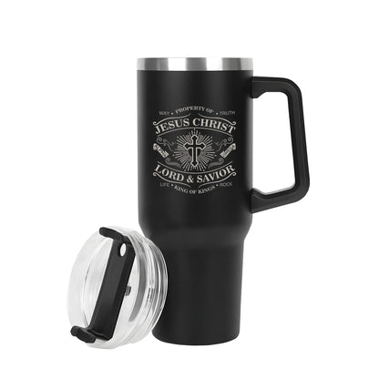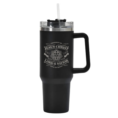 Property Of Christ 40oz Stainless Steel Christian Tumbler Travel Mug with Handle and Straw for Cup HolderWDEDQG1Y-1
