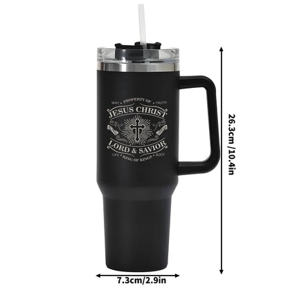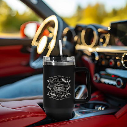 Property Of Christ 40oz Stainless Steel Christian Tumbler Travel Mug with Handle and Straw for Cup Holder
