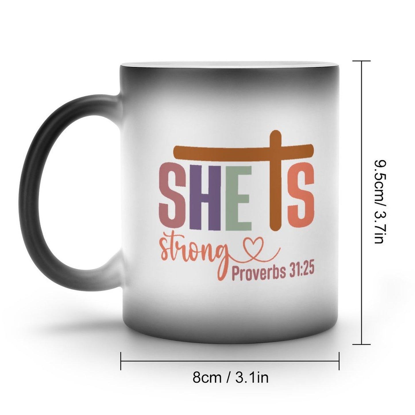 Proverbs 31:25 She Is Strong Christian Color Changing Mug (Dual-sided)