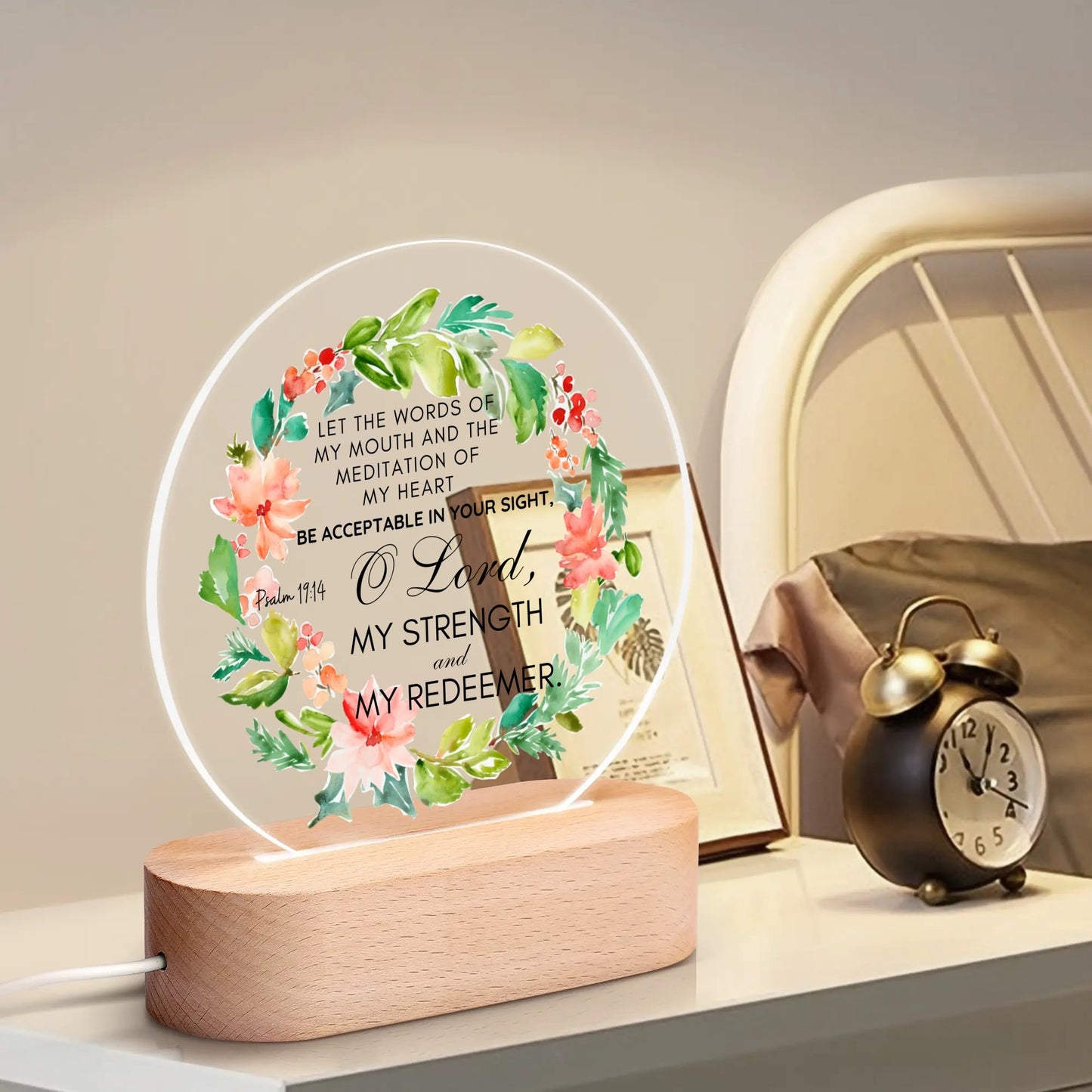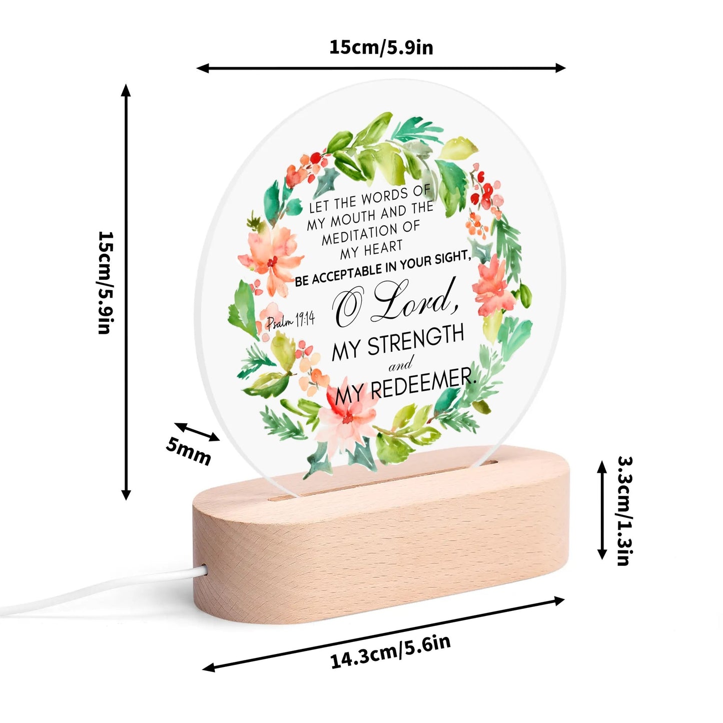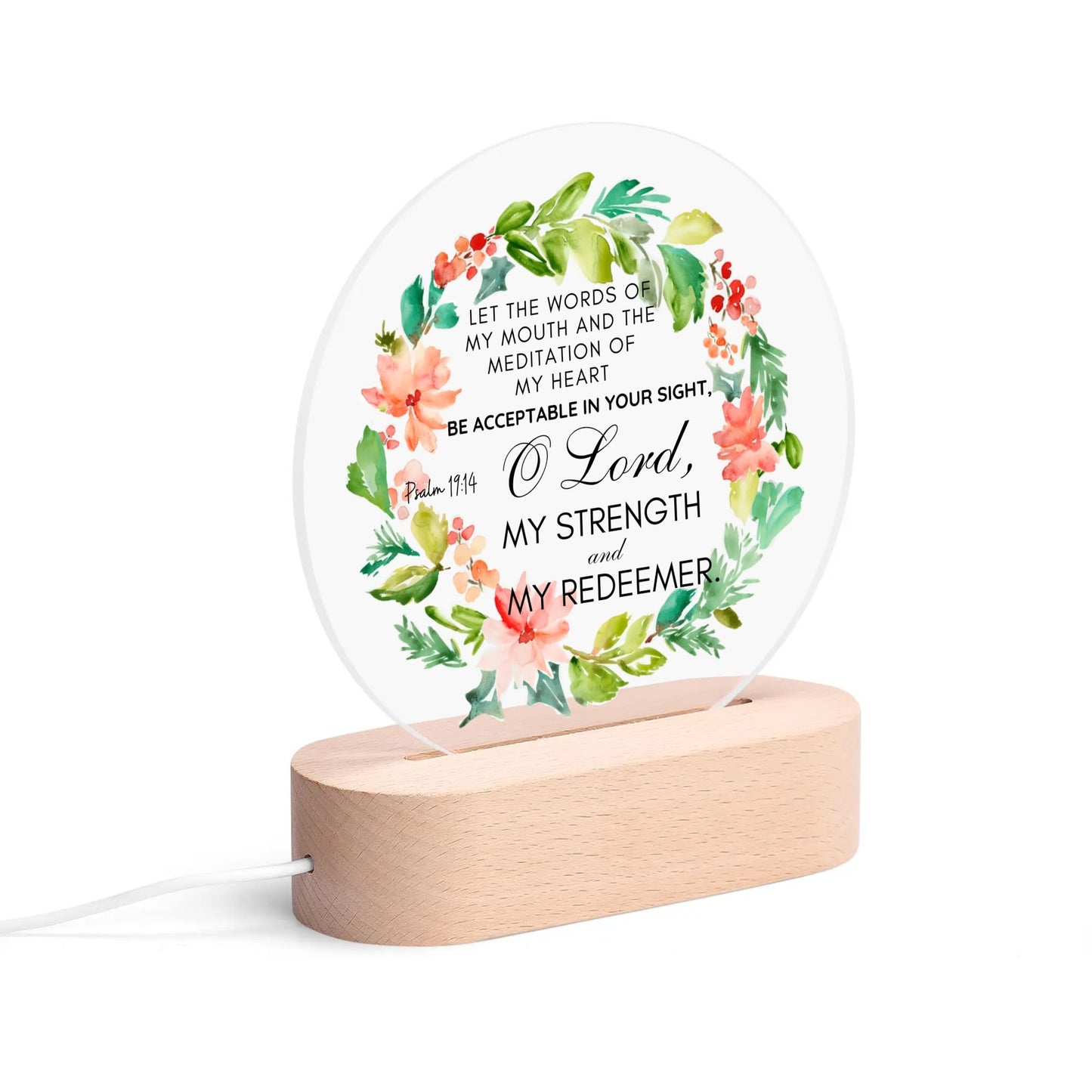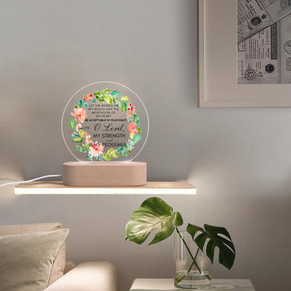 Psalm 19:14 O Lord My Strength And My Redeemer Christian Acrylic Round Lamp Night Light Christian Gift Idea