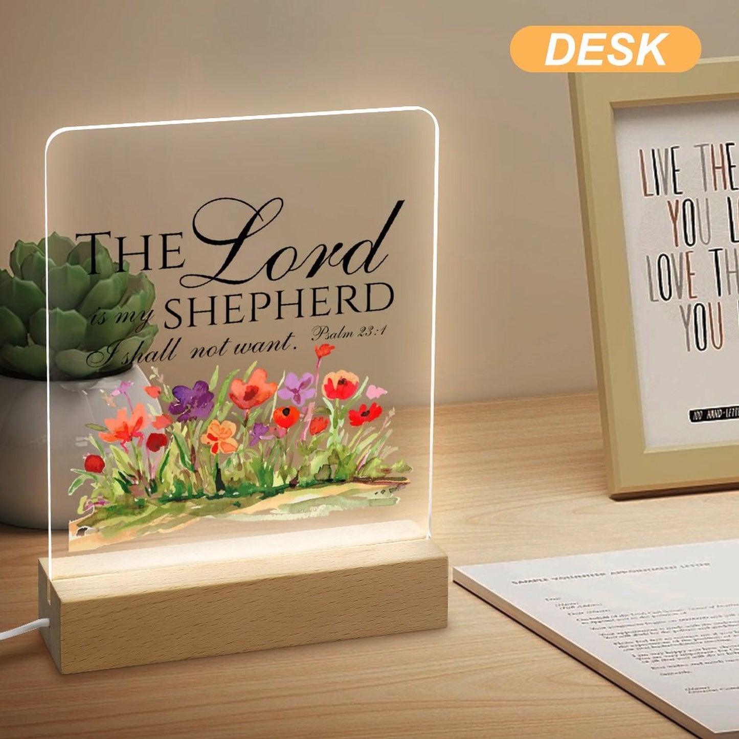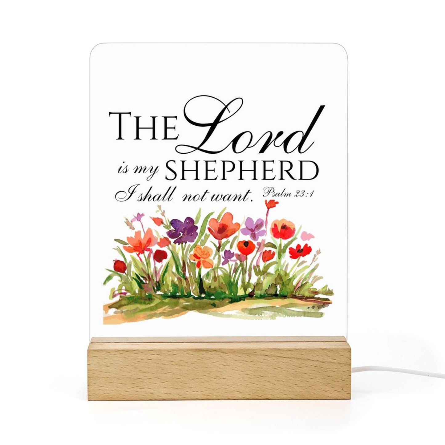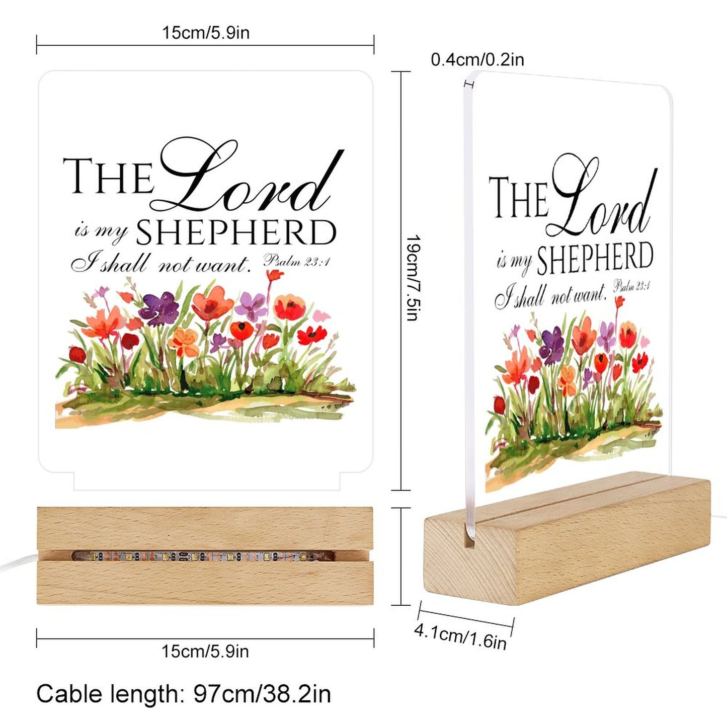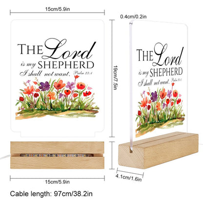 Psalm 23:1 The Lord Is My Shepherd Christian Acrylic Night Light with Wooden Base Christian Gift Idea