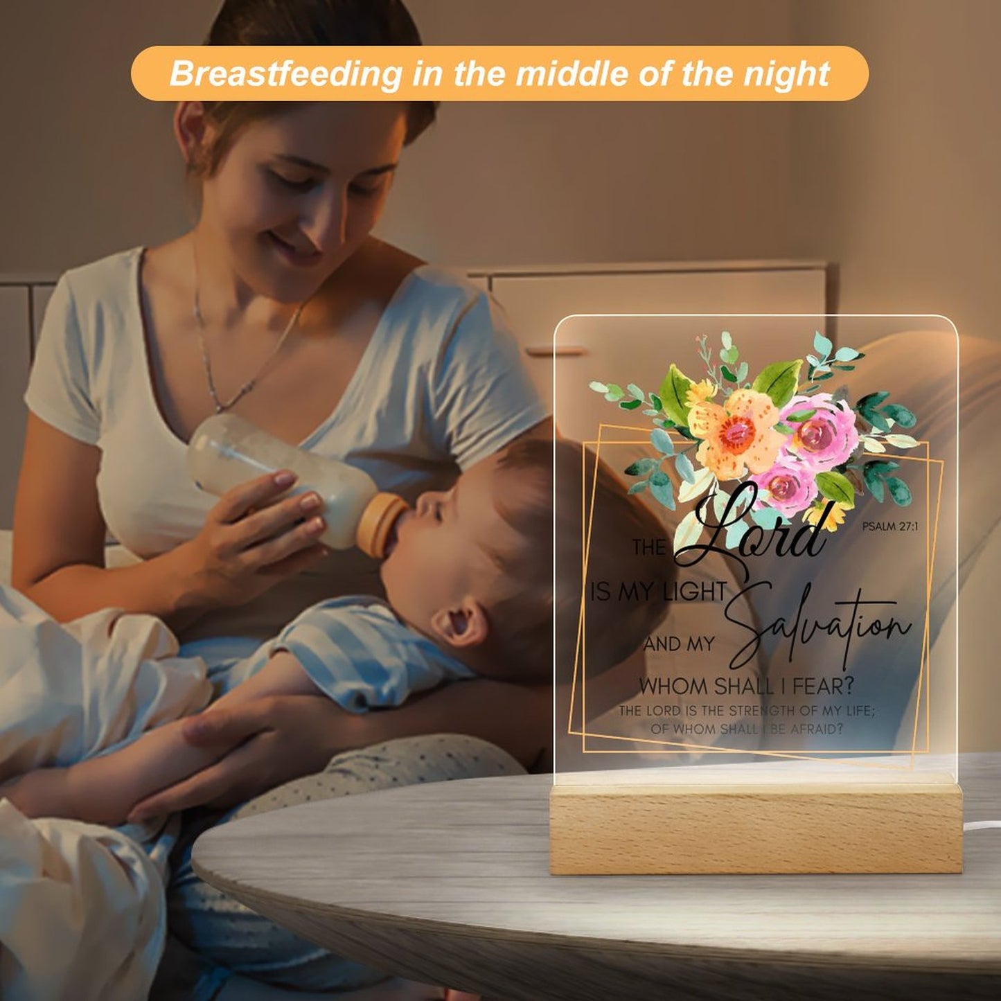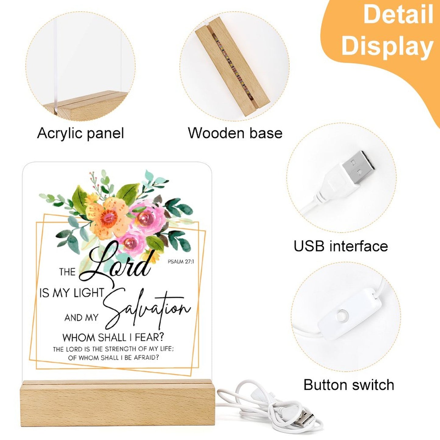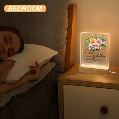 Psalm 27:1 The Lord Is My Light And My Salvation Christian Acrylic Night Light with Wooden Base Christian Gift Idea