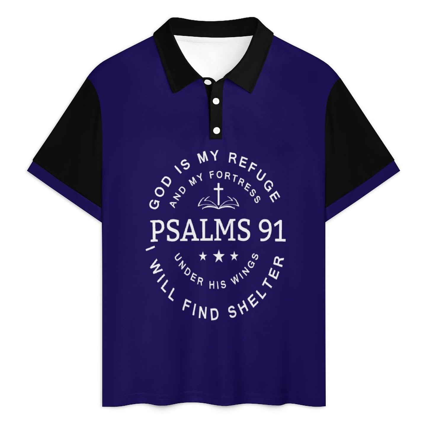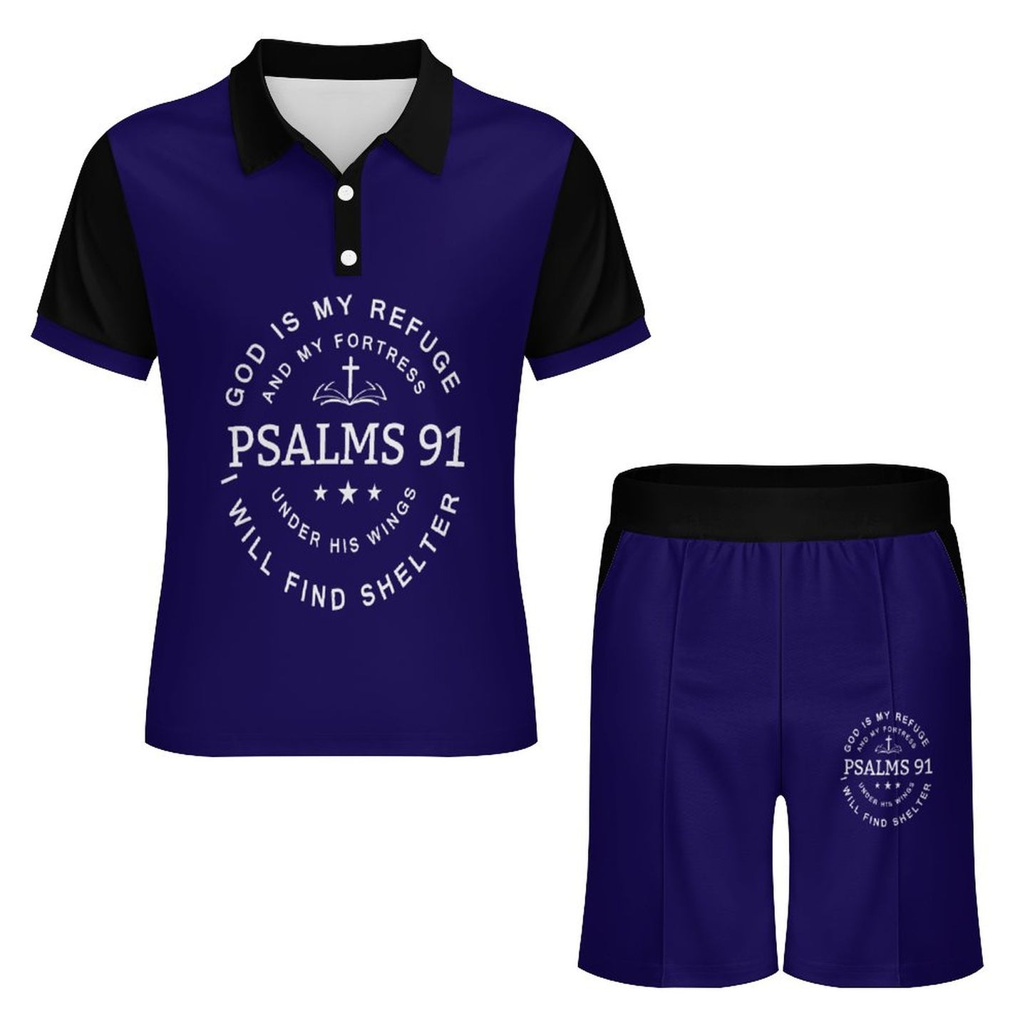 Psalms 91 He Is My Refuge Men's Christian Casual Outfit POLO Shirt Set