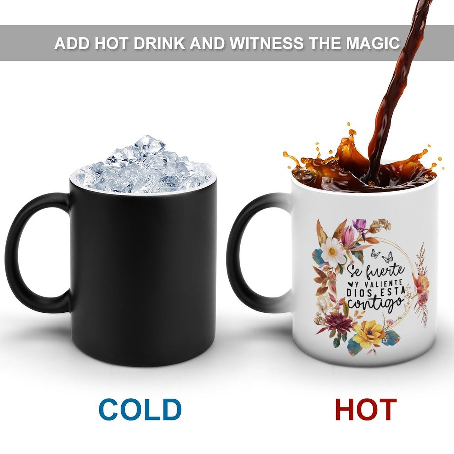 Se Fuerte Y Valiente Dios Esta Contigo Spanish Christian Color Changing Mug (Dual-sided)