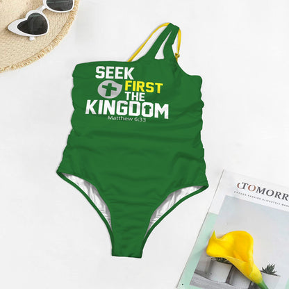 Seek First The Kingdom Christian Women's One Shoulder Keyhole One Piece Swimsuit