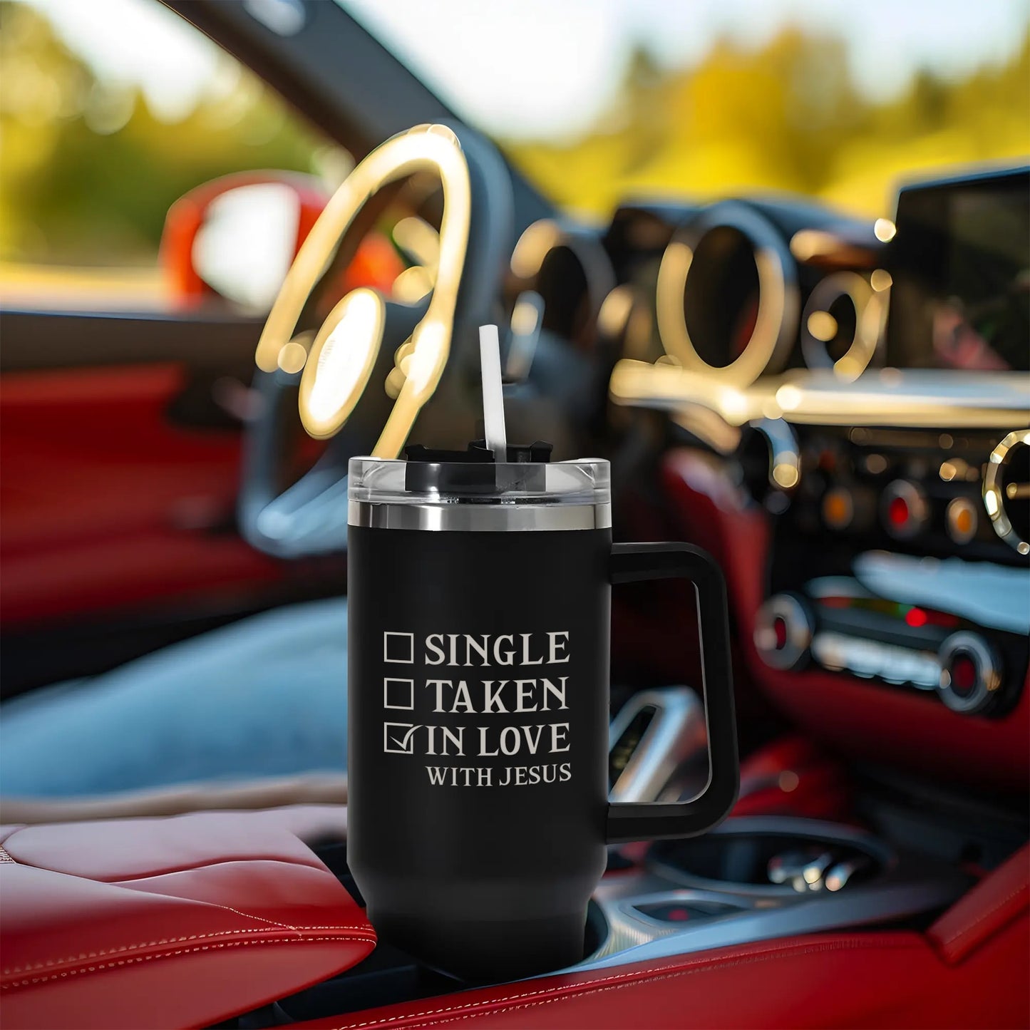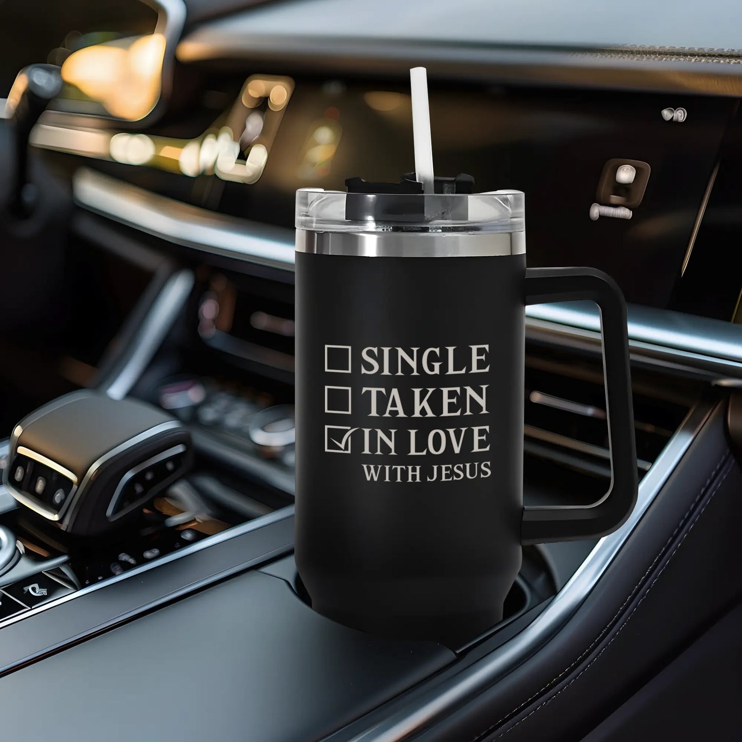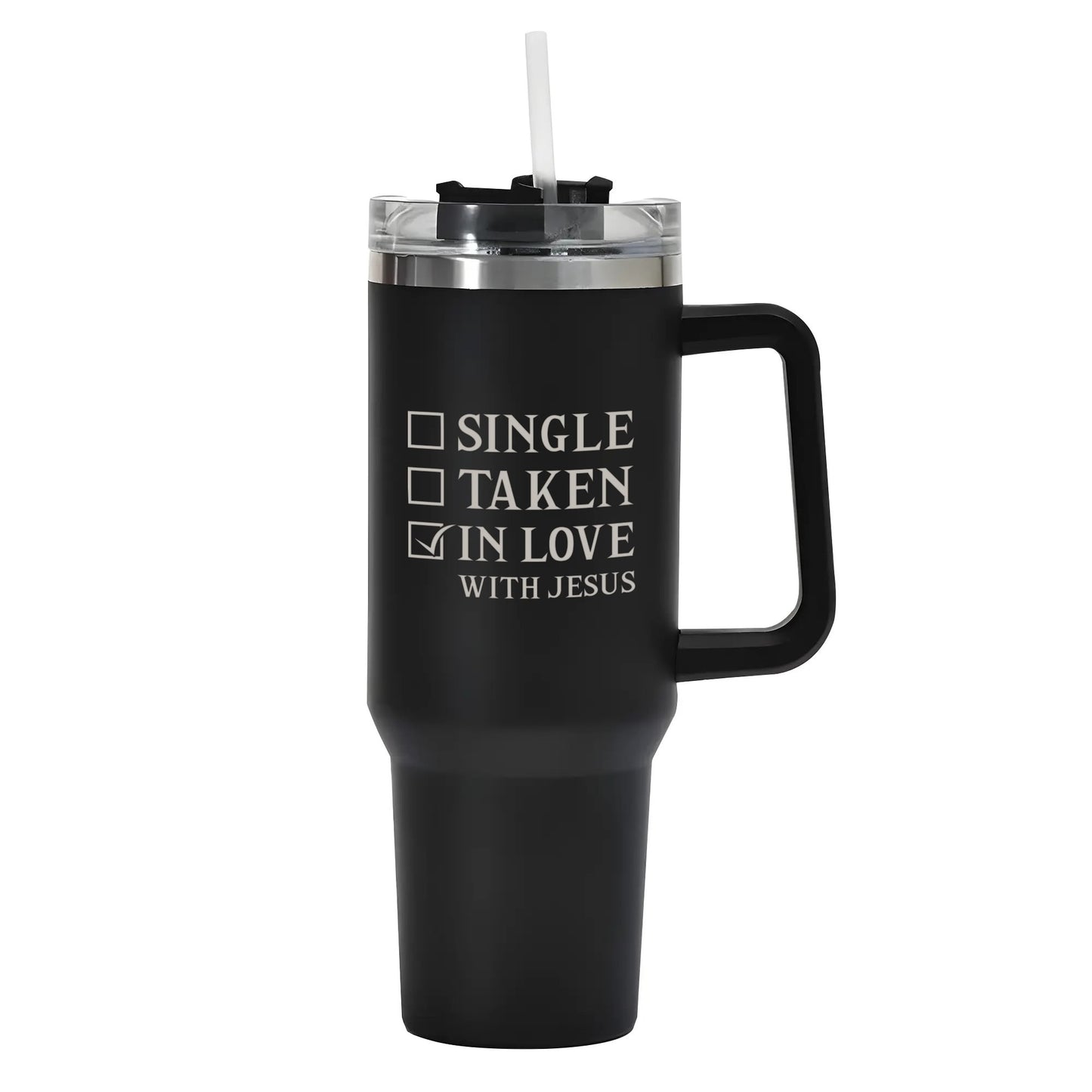 Single Taken In Love With Him 40oz Stainless Steel Christian Tumbler Travel Mug with Handle and Straw for Cup HolderNMQ0KV0W-1