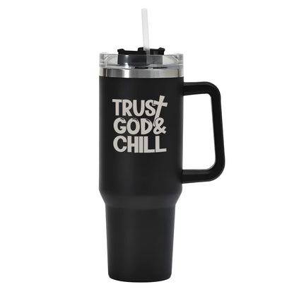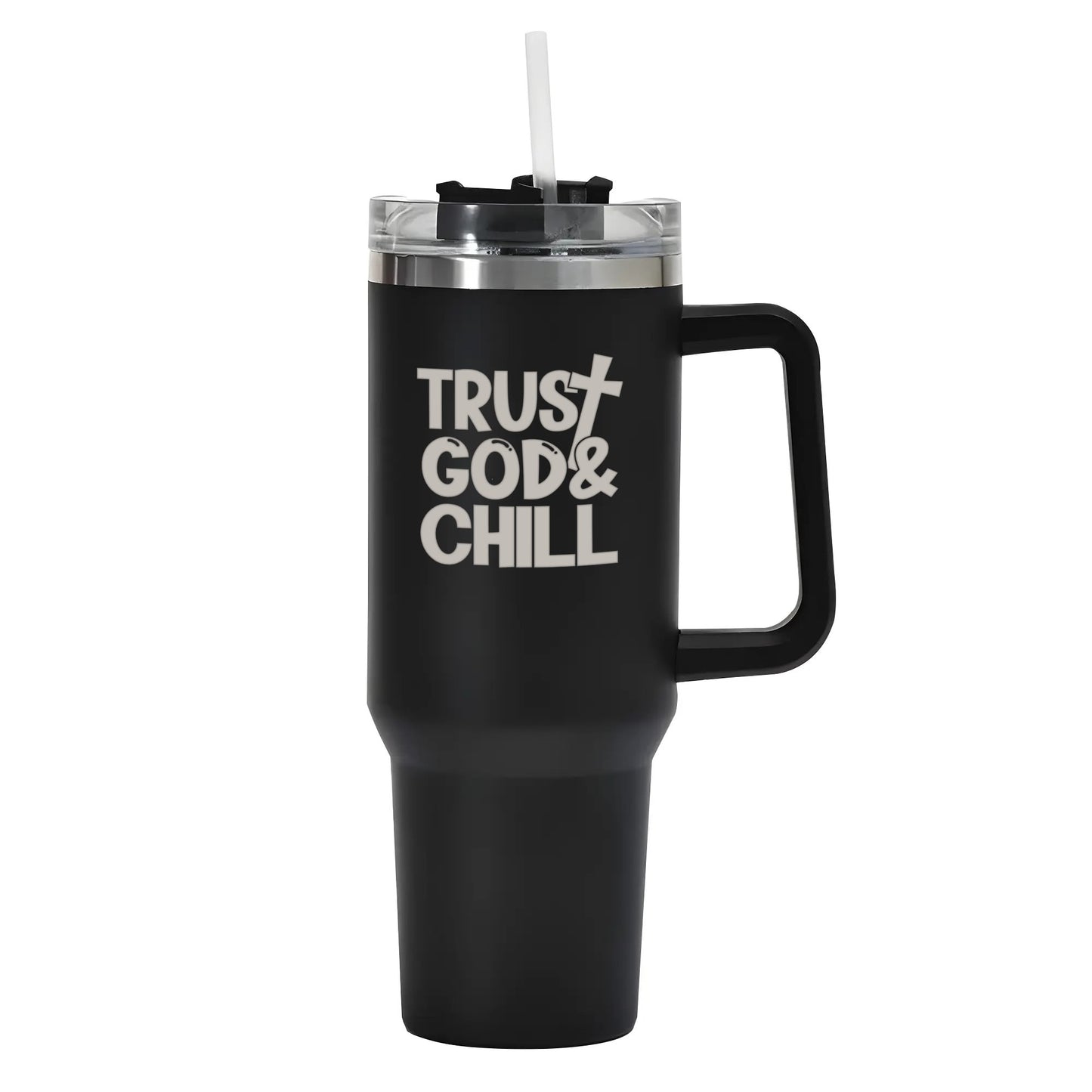 Trust And Chill 40oz Stainless Steel Christian Tumbler Travel Mug with Handle and Straw for Cup HolderNR9673RY-1