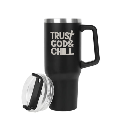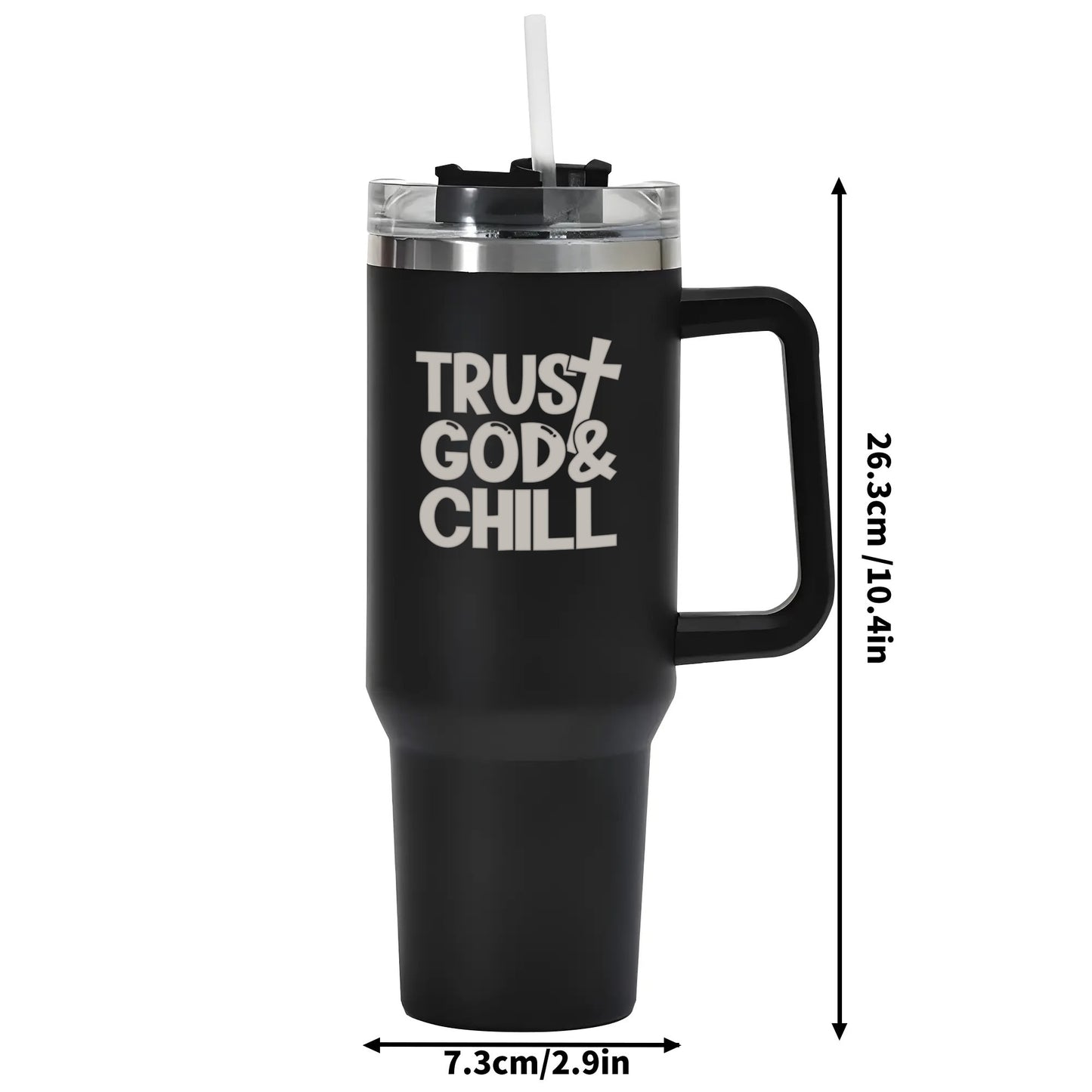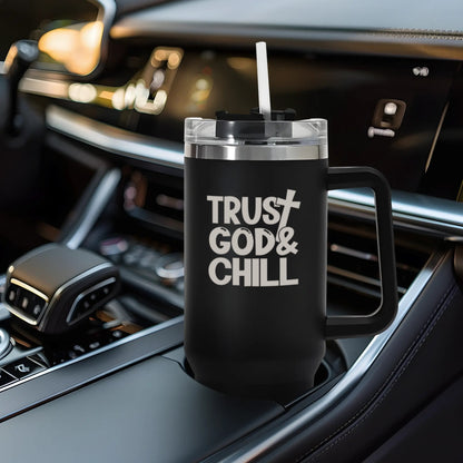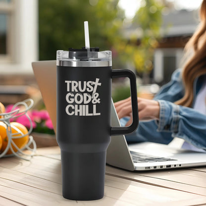 Trust And Chill 40oz Stainless Steel Christian Tumbler Travel Mug with Handle and Straw for Cup Holder
