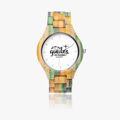 Where He Guides He Provides – Camouflage Wooden Christian Watch (Green & Blue)